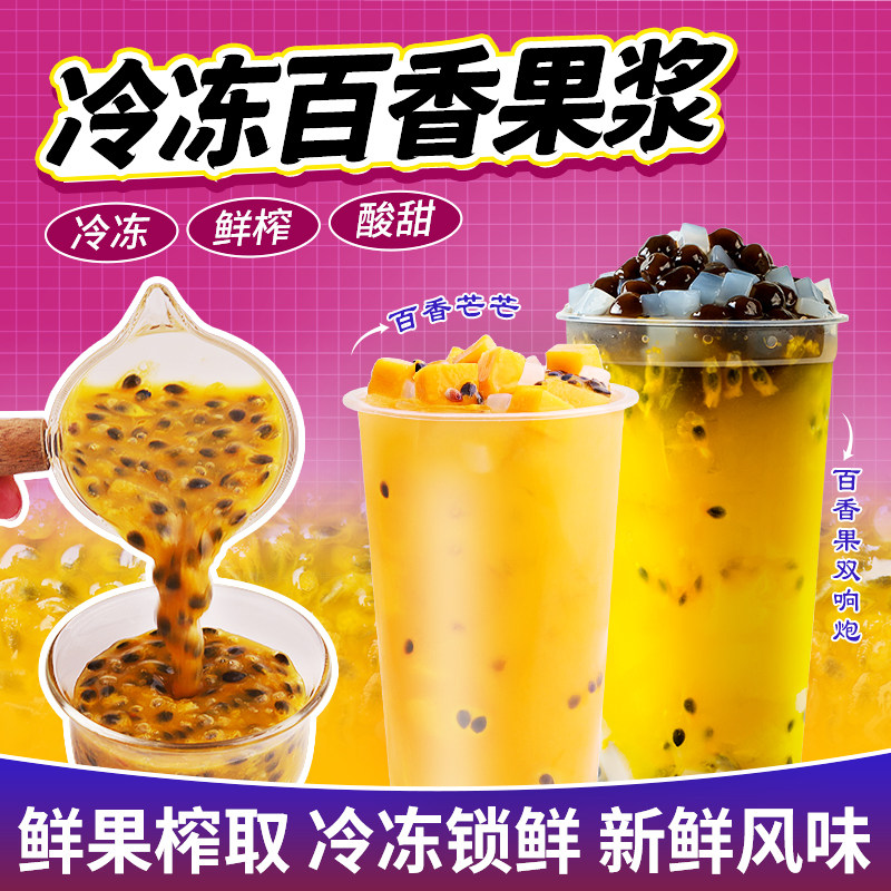 📚 冷冻百香果浆1kg 商用百香果双响炮果汁果肉果粒酱奶茶店专用原料