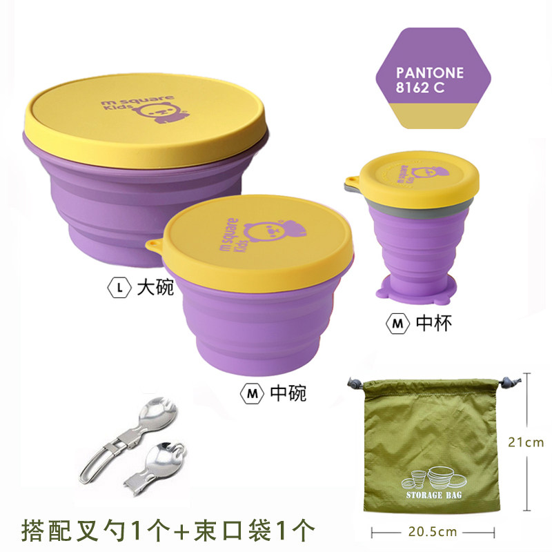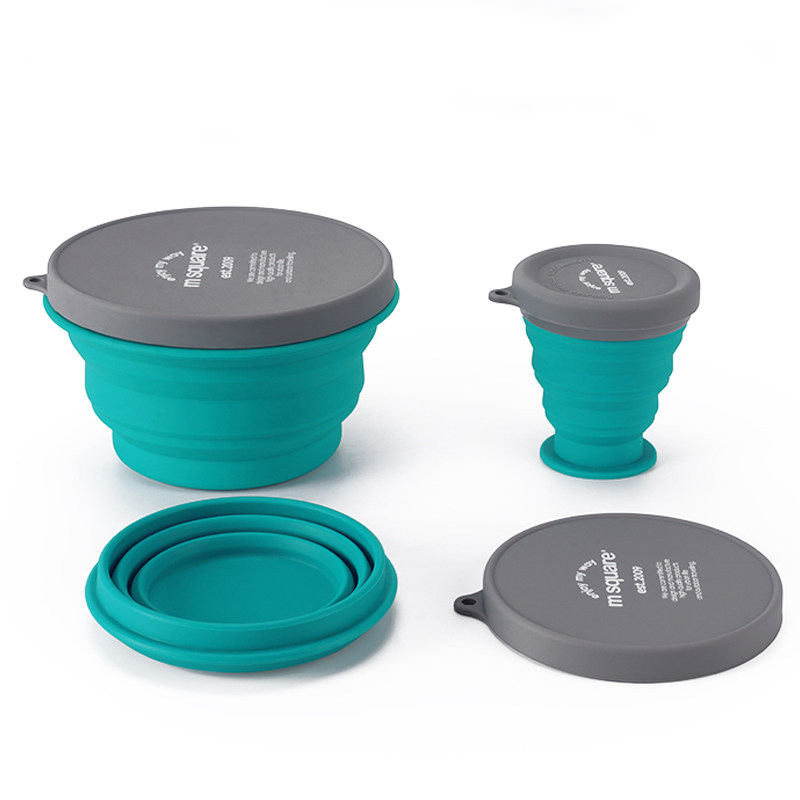 📚 MS自驾户外旅游环保餐具露营可折叠杯碗食品级硅胶杯折叠碗便携杯