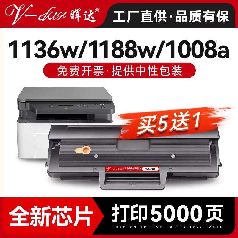 📚 晖达适用惠普1188nw硒鼓mfp 1136w 1188w 1188pnw 1188a粉盒1008a 1008w打印机墨盒W1660A碳粉盒HP166A芯片