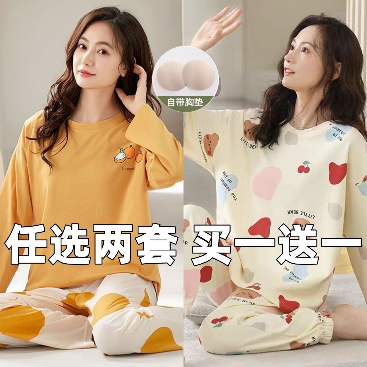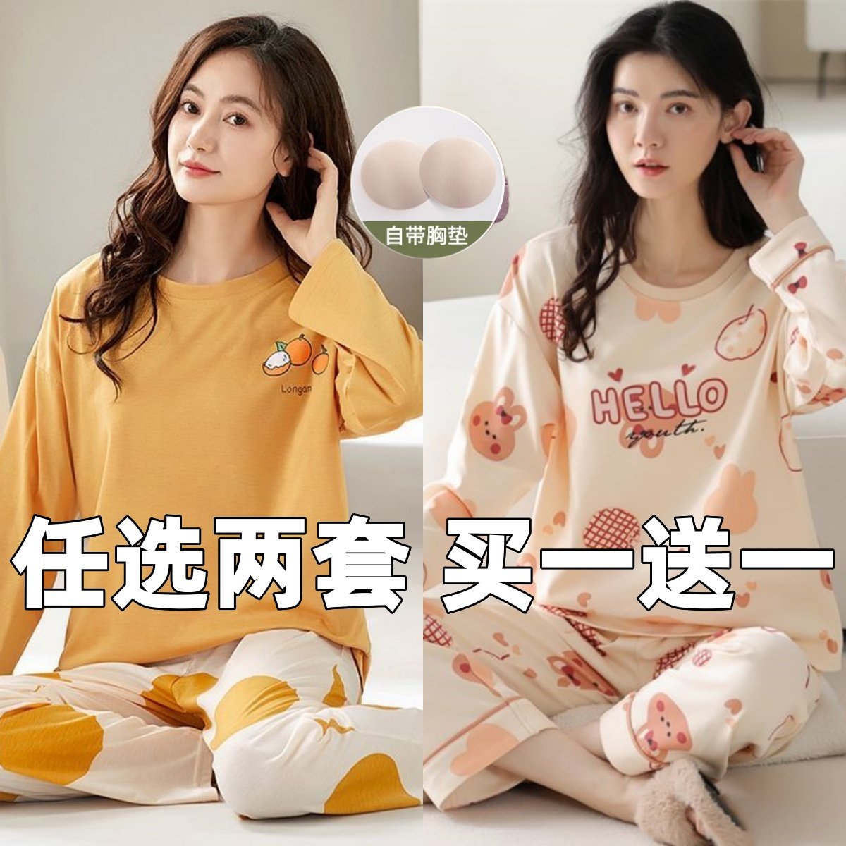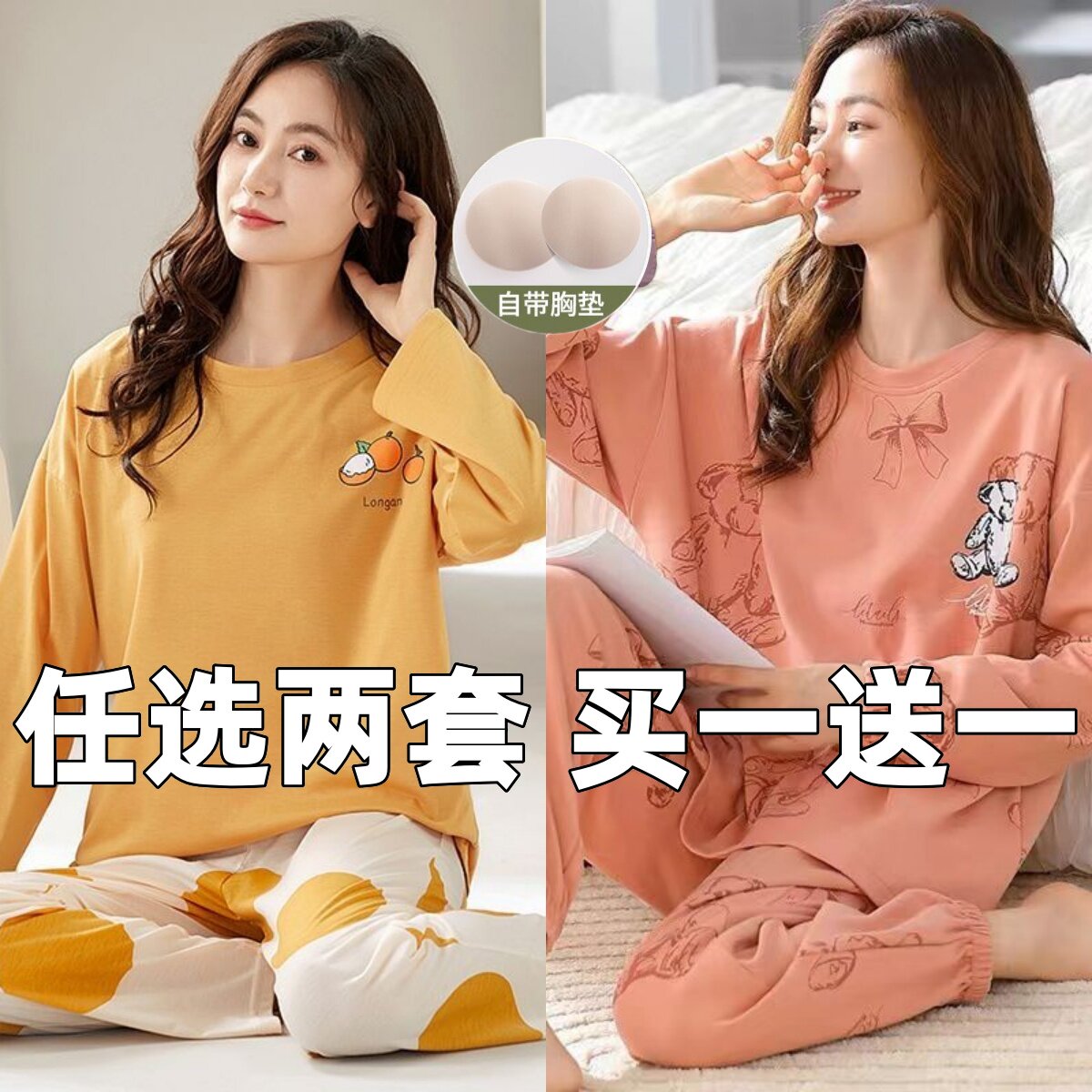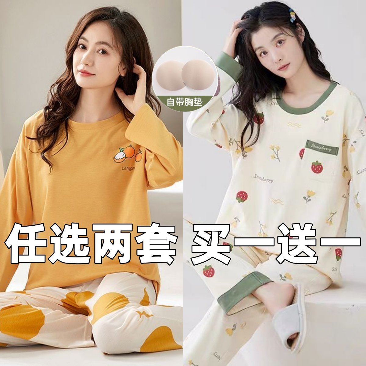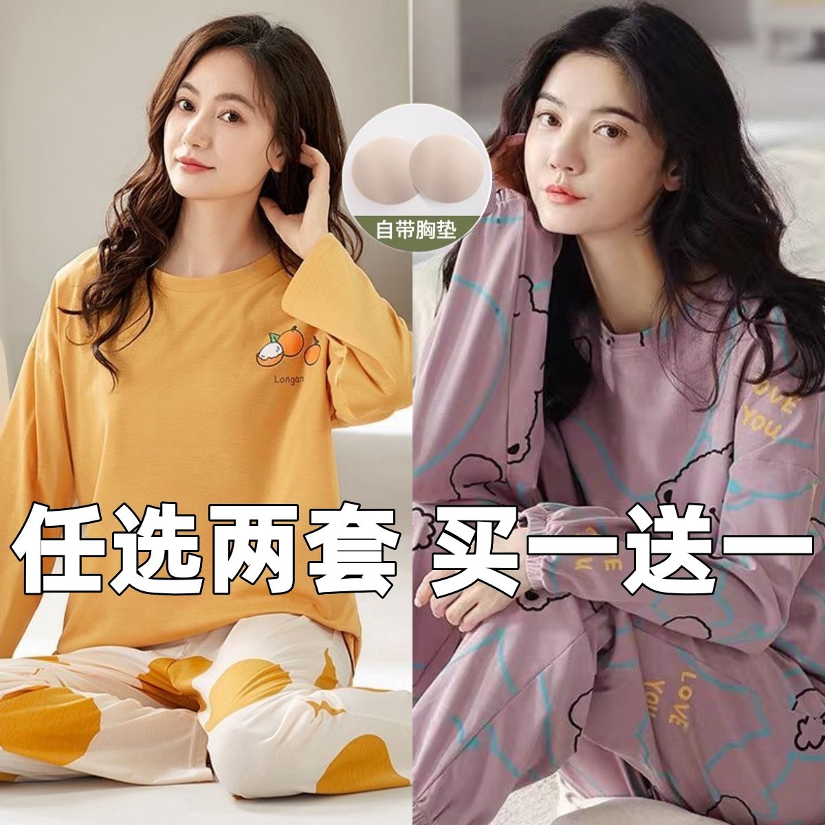 📚 韩版睡衣女生长袖春秋薄款甜美可爱加肥加大码家居服套装宿舍宽松