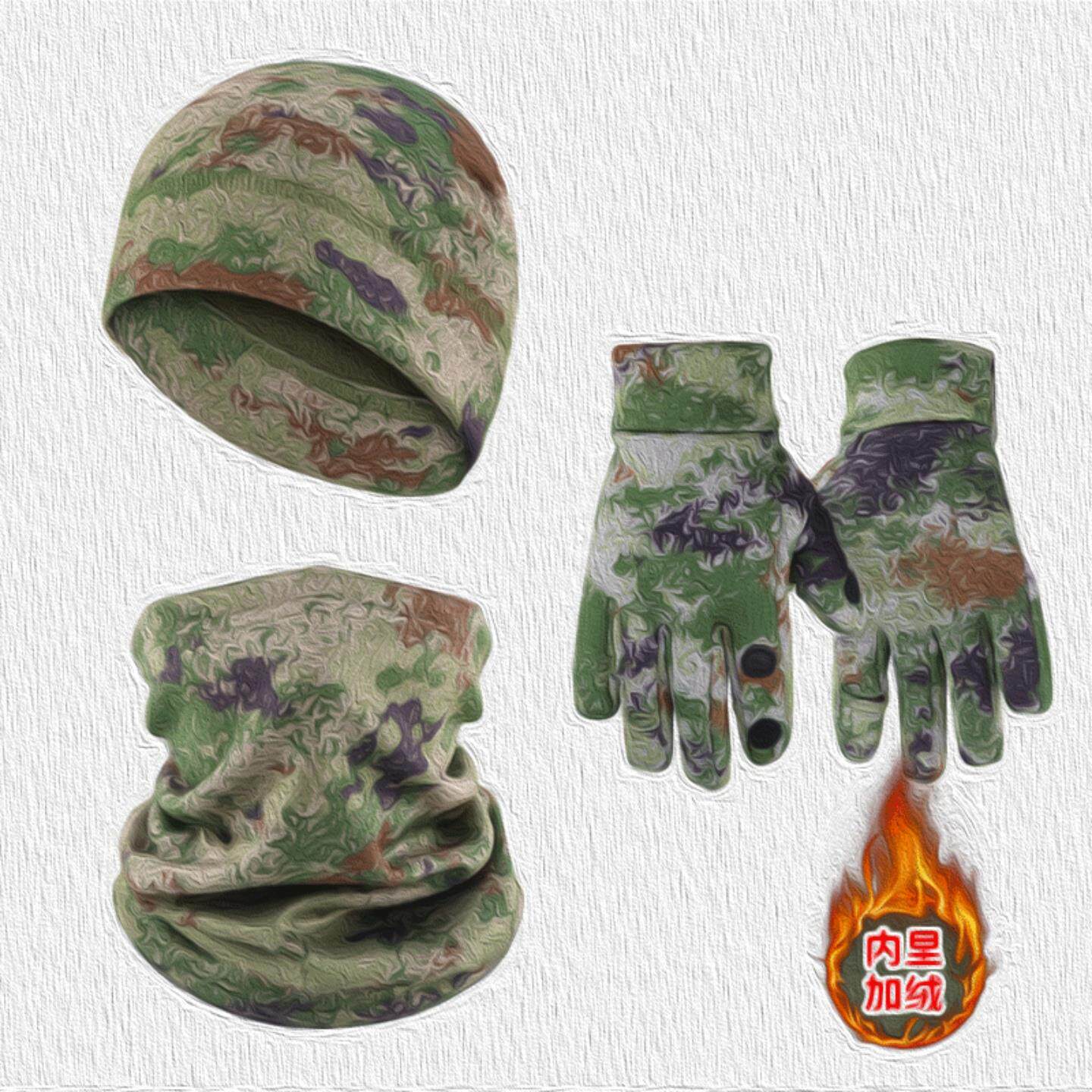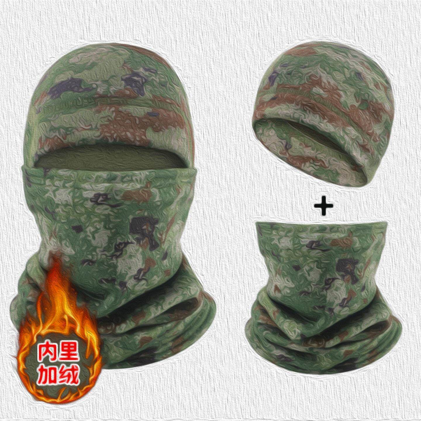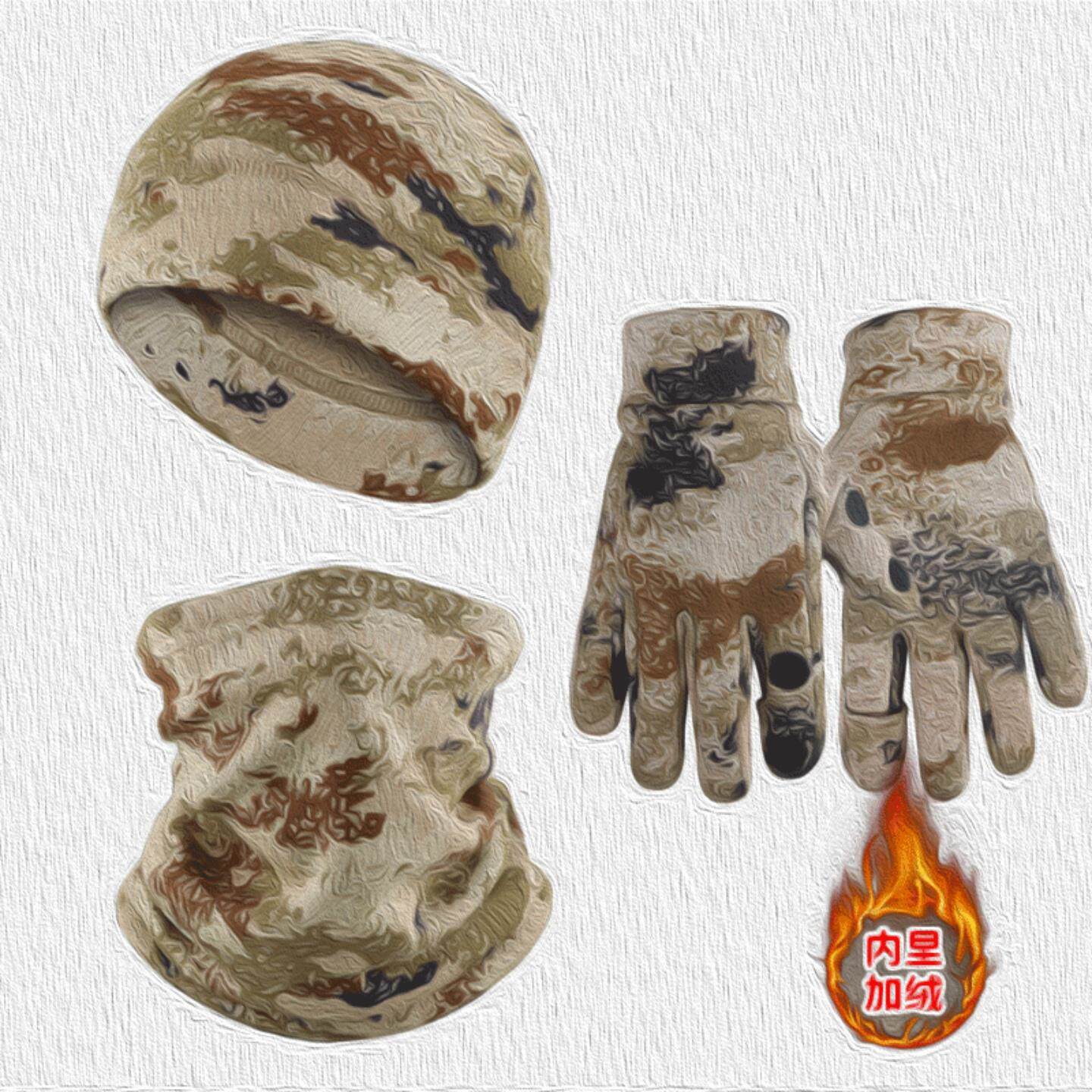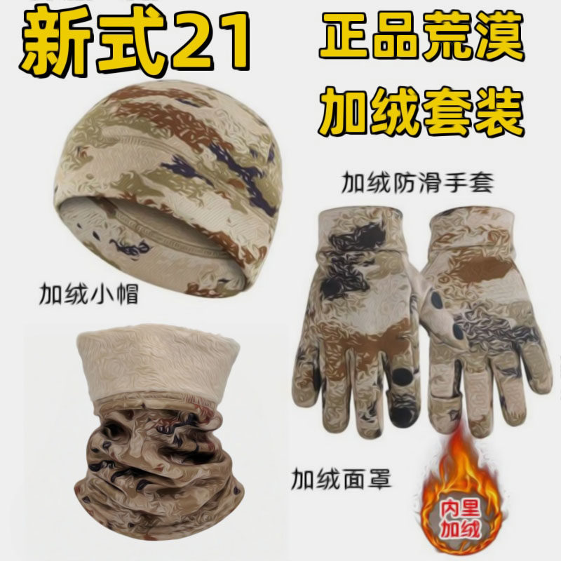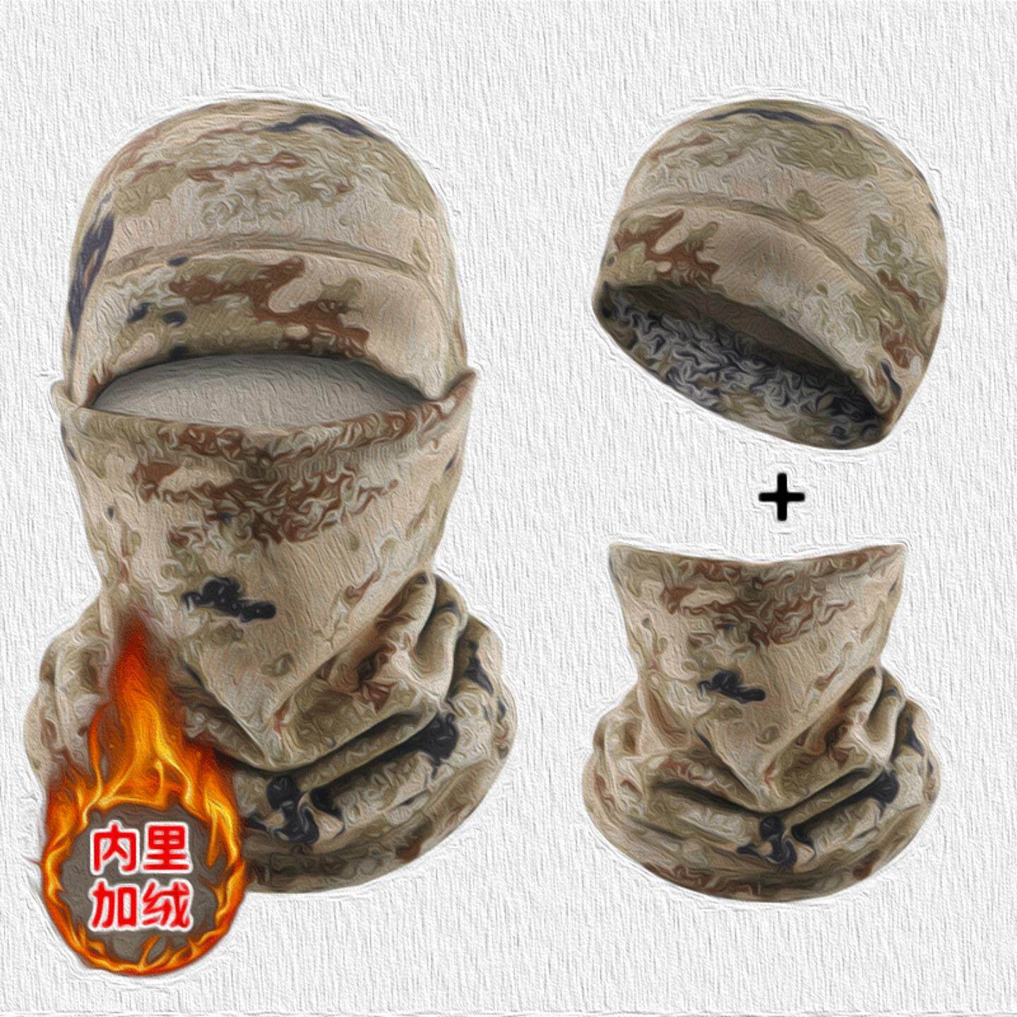 📚 新E21K式迷彩防寒面罩骑行脖套荒漠手套加绒帽子冬季防寒保暖套装