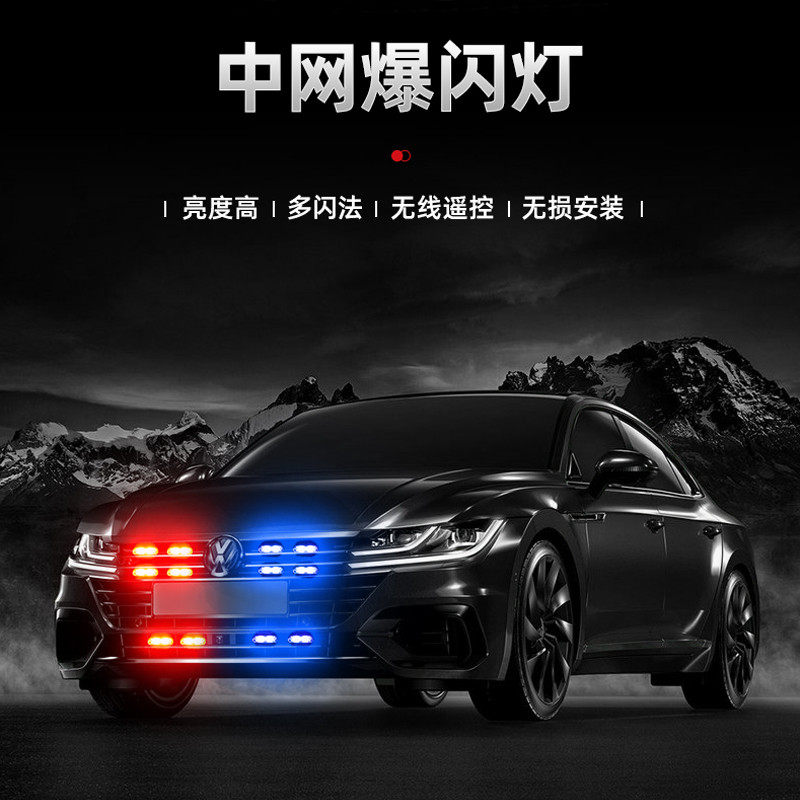 📚 汽车改装led超亮强光红蓝白黄装饰中网警示爆闪灯开道远光反击灯