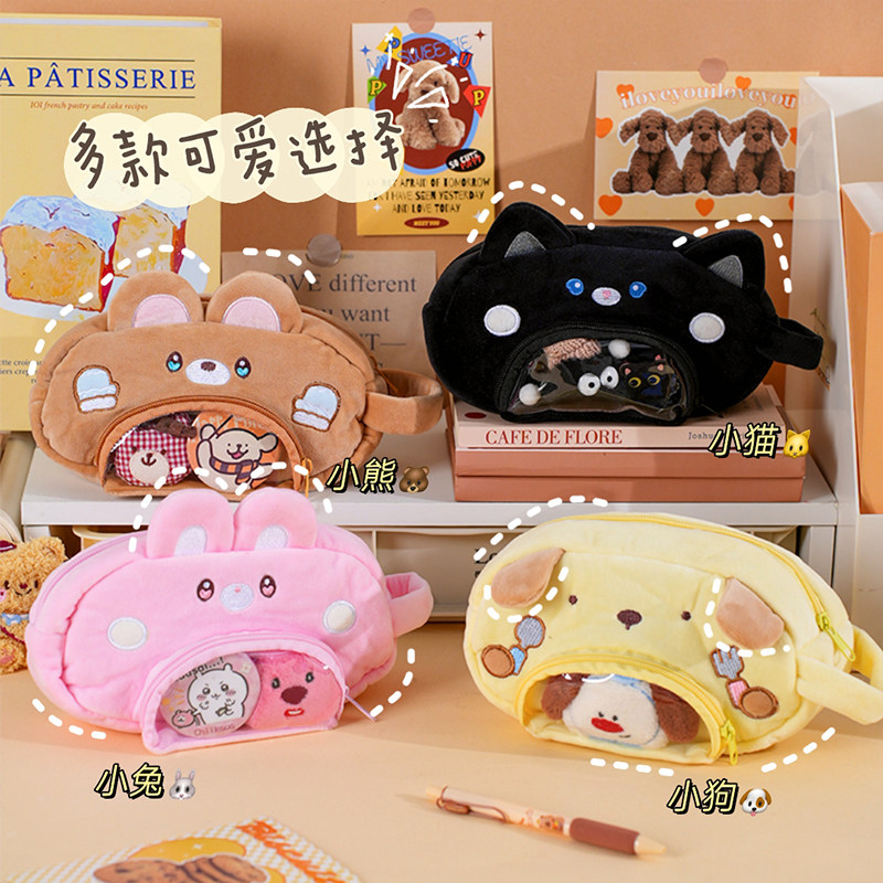 📚 趣味可爱毛绒笔袋大容量文具袋初中生桌面收纳高颜值初中女生2026新款毛绒铅笔盒小众不撞款毛茸茸文具收纳袋