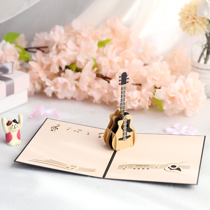📚 生日立体贺卡音乐韩国创意3d吉他diy纸雕高档送男生朋友小卡片
