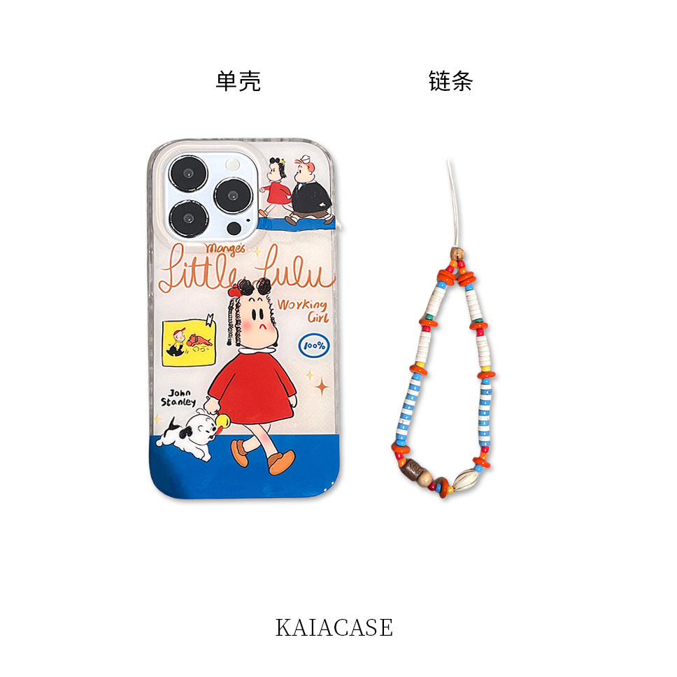 📚 kaia 原田治卡通女孩小狗适用iphone16promax手机壳苹果13新款15promax双层带挂绳14女款11
