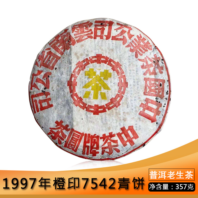 📚 龙芮茶 中茶1997年橙印7542老生茶357g普洱茶生茶 云南七子饼茶