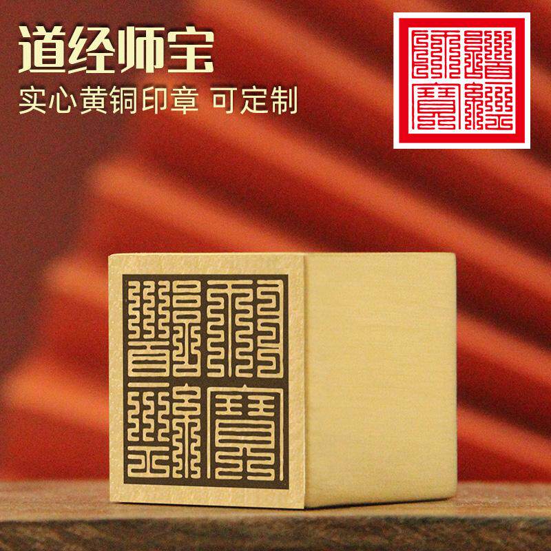 📚 不周 道经师宝黄铜印章定制篆刻佛道大铜印实心金属道士用品铜章
