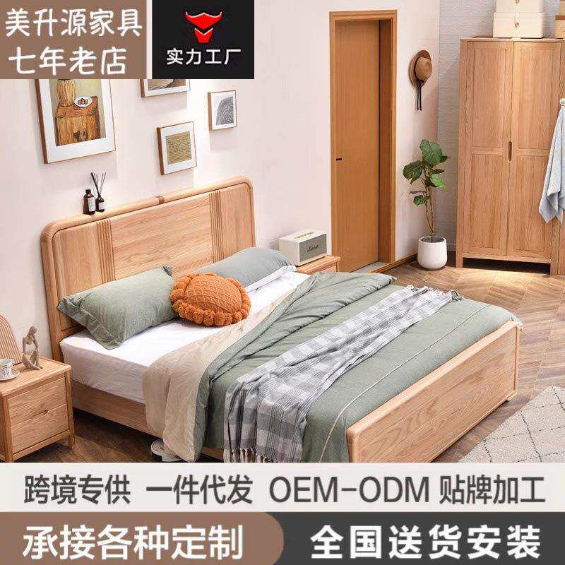 📚 原木北美红橡木全实木床1.8米双人主卧大床现代简约1.5M储物婚床