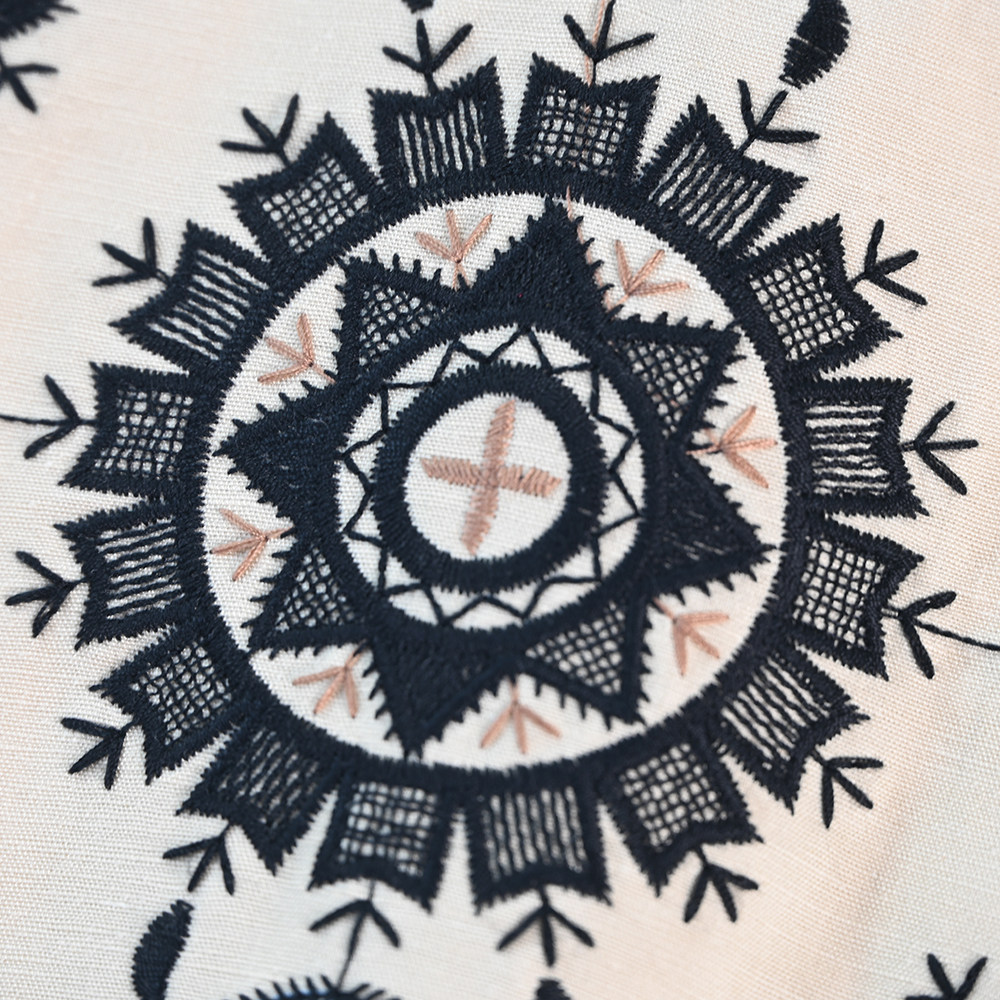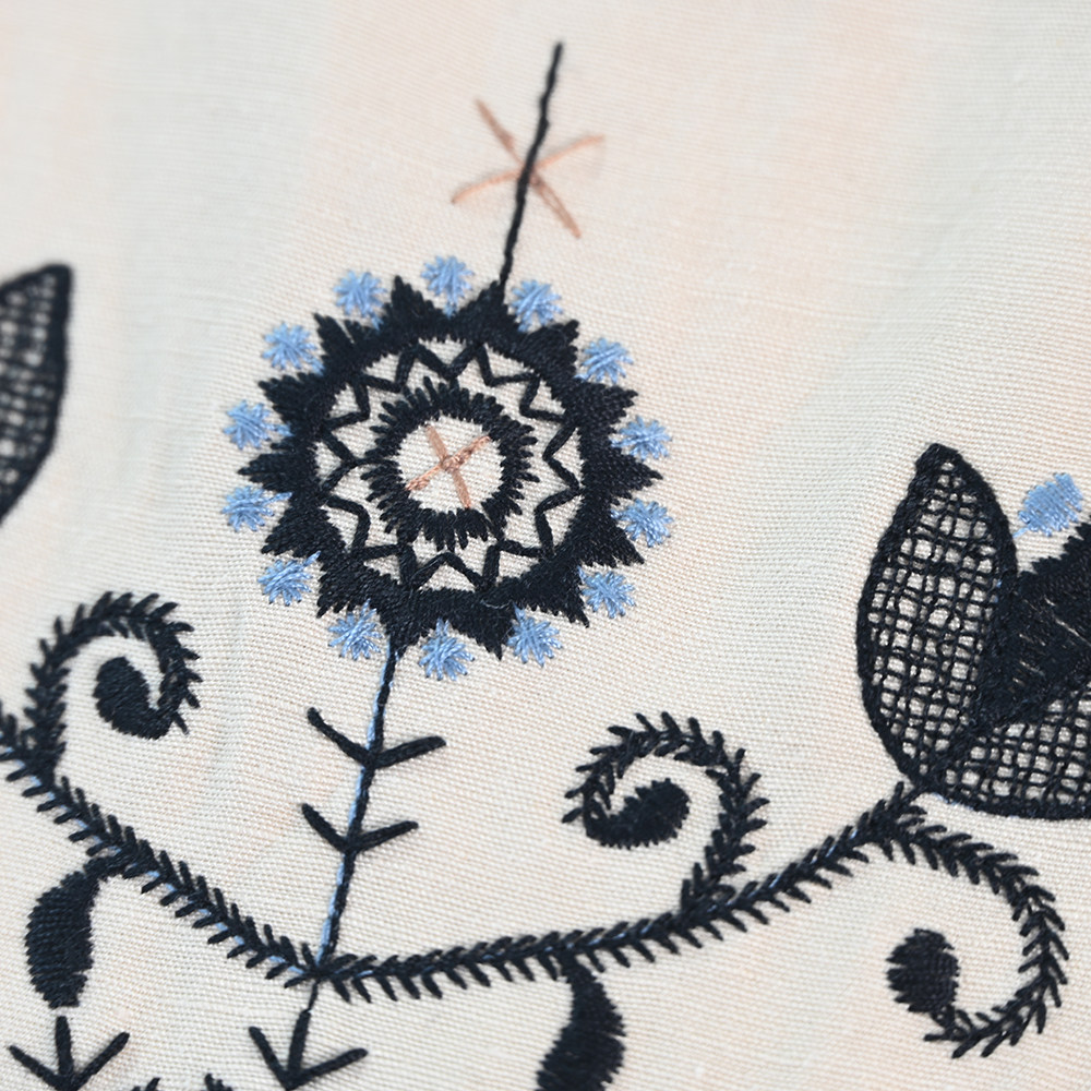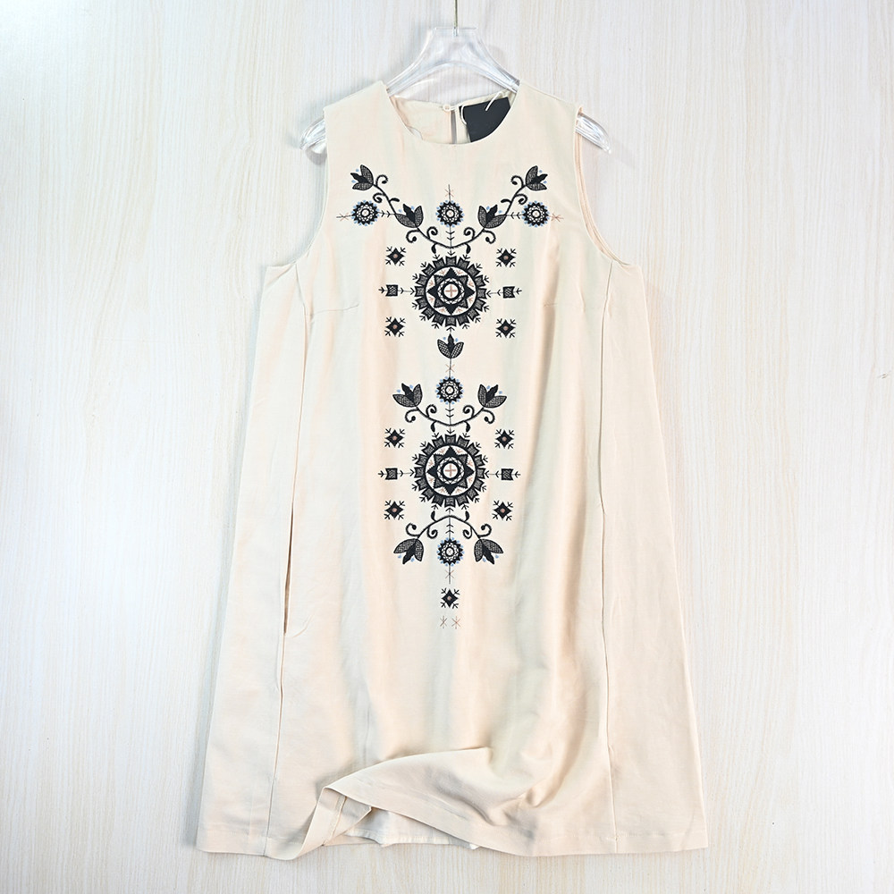 📚 思琪女装264/09 优雅精致刺绣棉麻混纺圆领A字型无袖连衣裙