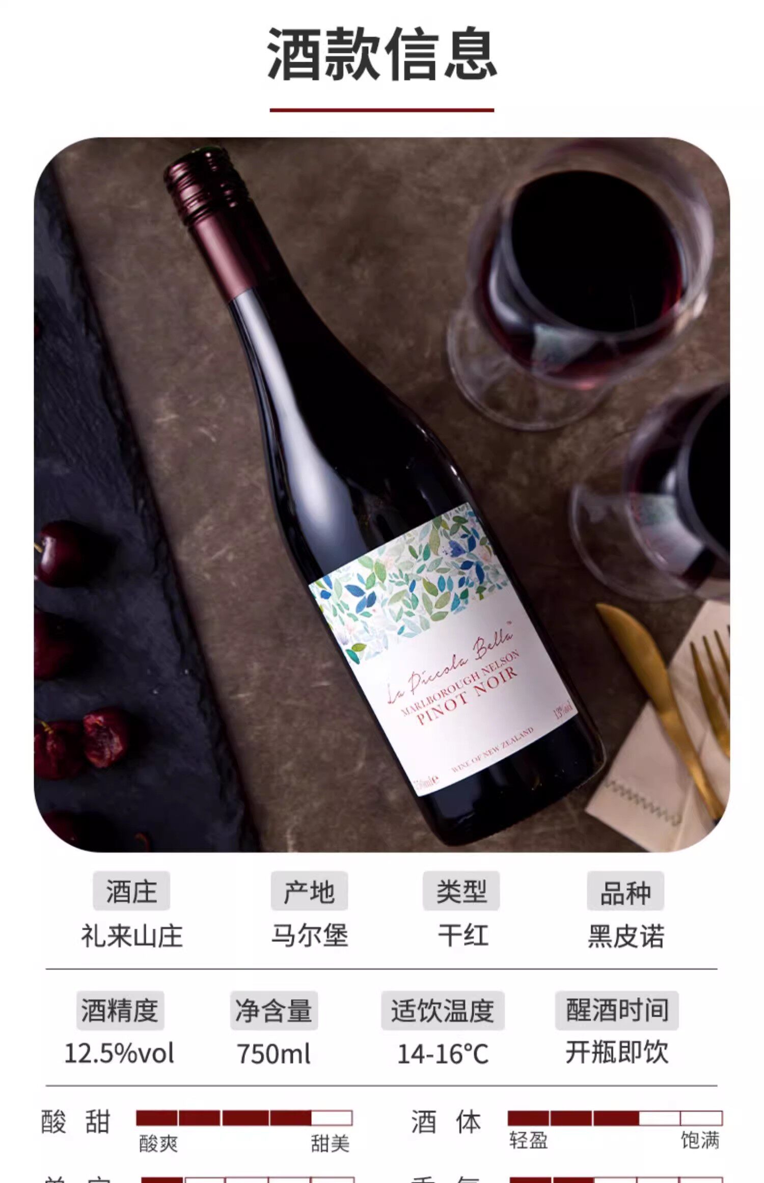 📚 娇贵皇后黑皮诺代表·新西兰蓓拉黑皮诺干红葡萄酒 新鲜甜美口粮