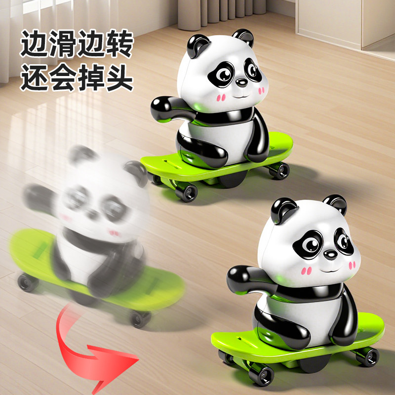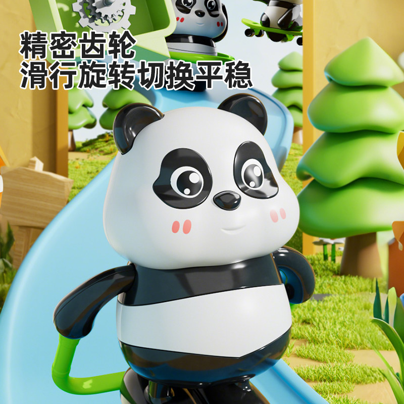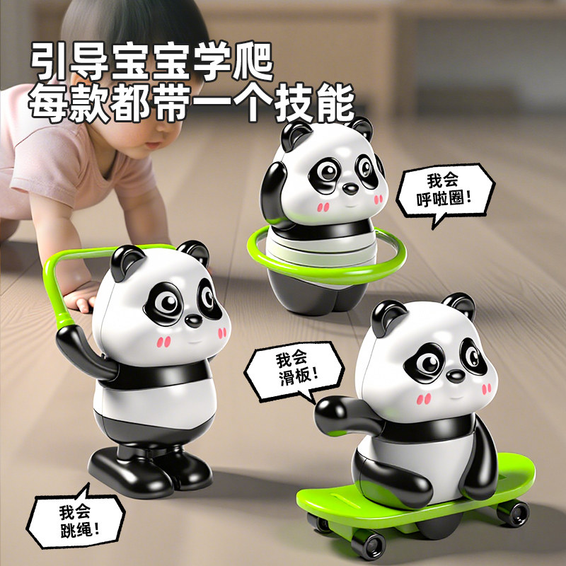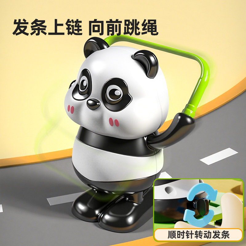 📚 儿童上链上弦翻滚滑板熊猫三兄弟玩具会动的发条动物宝宝爬行跳绳