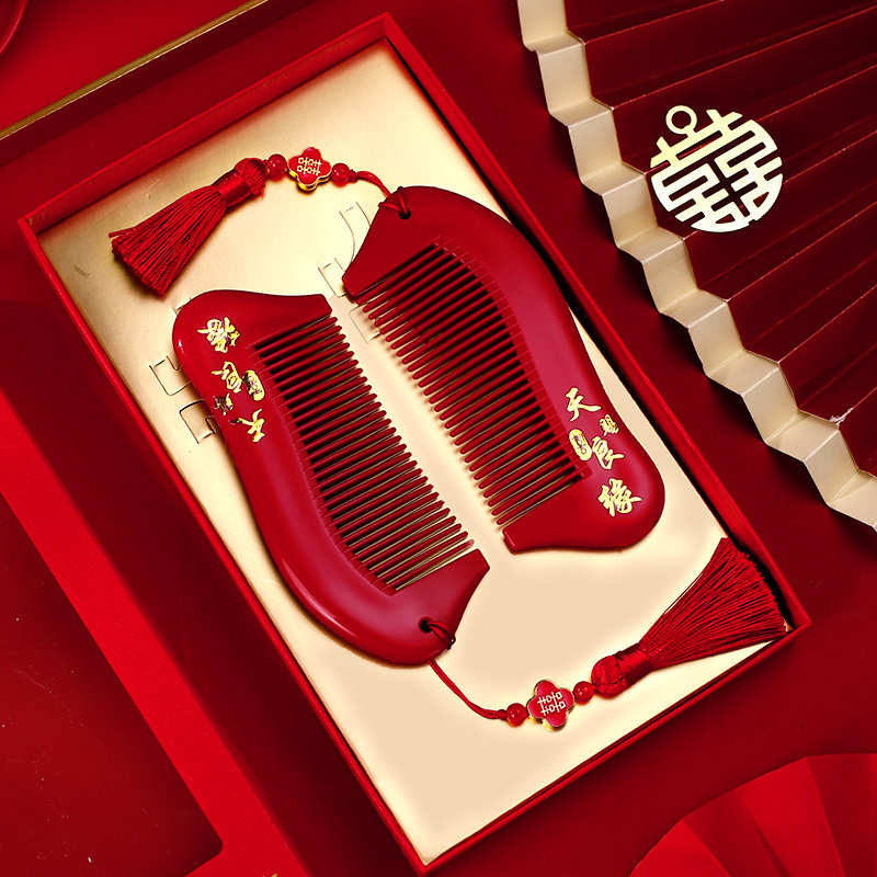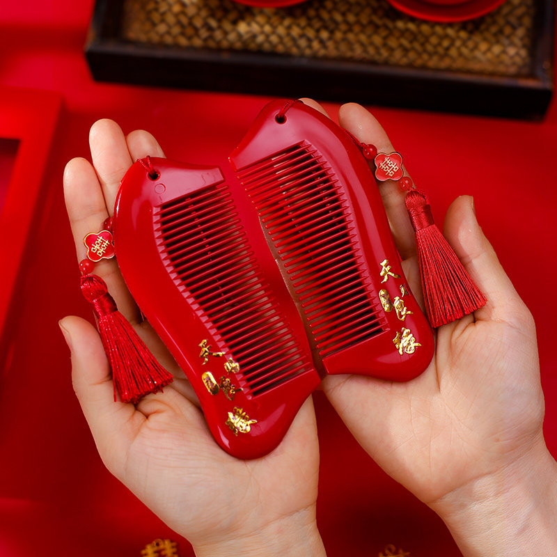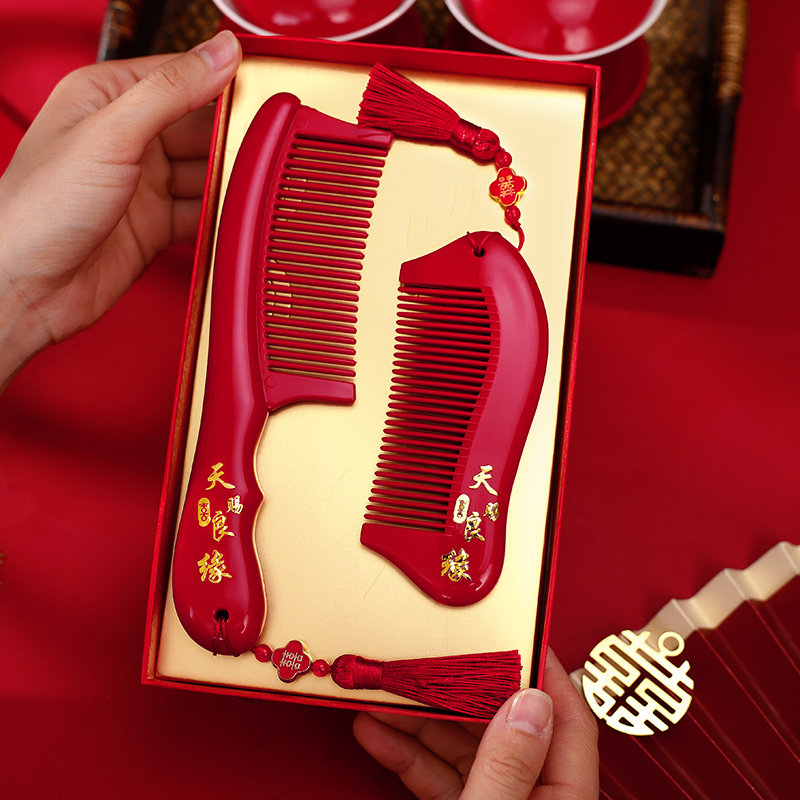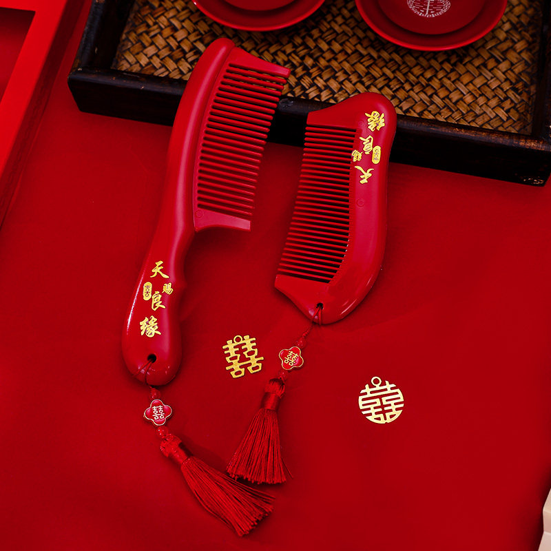 📚 结婚梳子一对婚礼高档喜梳新娘陪嫁红色喜字对梳嫁妆婚庆用品大全