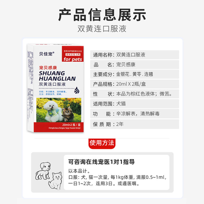 📚 狗狗猫咪专用感冒药咳嗽流鼻涕双黄连口服液宠物犬抗病毒发烧流感