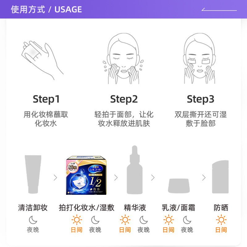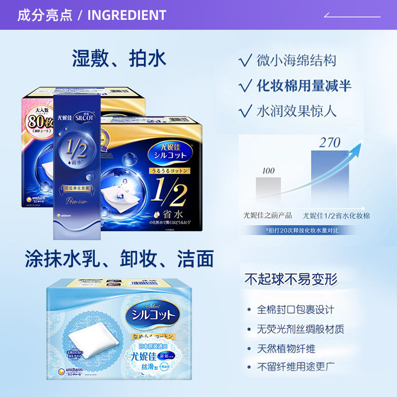 📚 【自营】Silcot/舒蔻尤妮佳化妆棉卸妆湿敷专用1/2省水型多功能