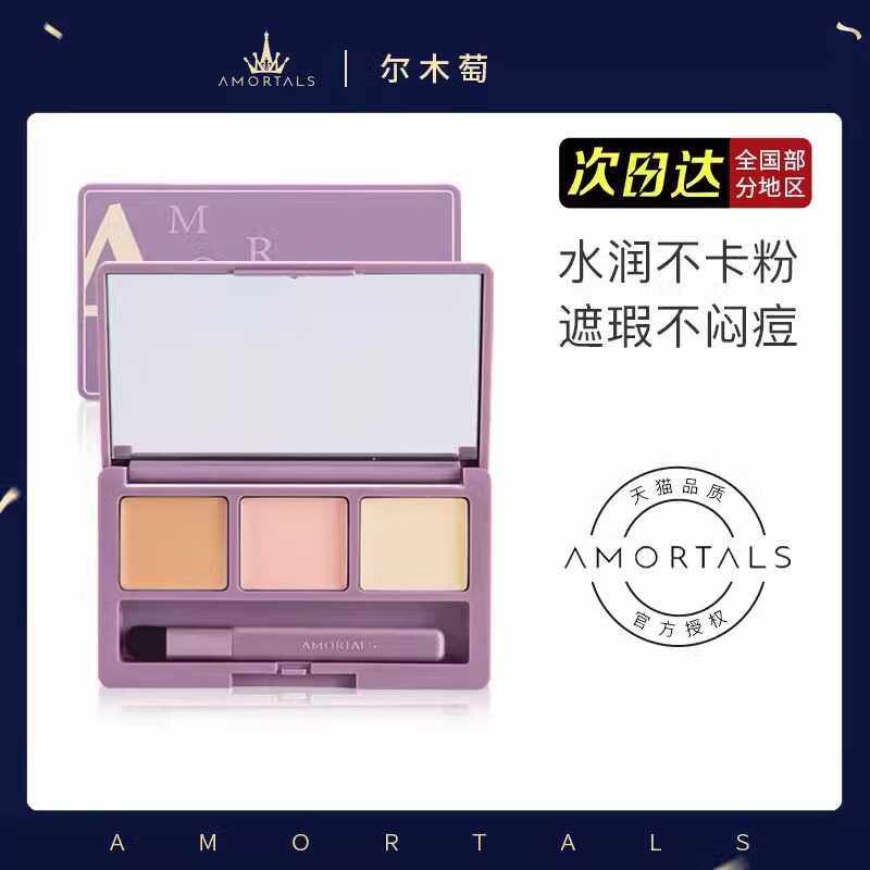📚 尔木萄三色多色遮瑕盘遮暇膏黑眼圈雀斑点遮盖脸部痘印痘痘