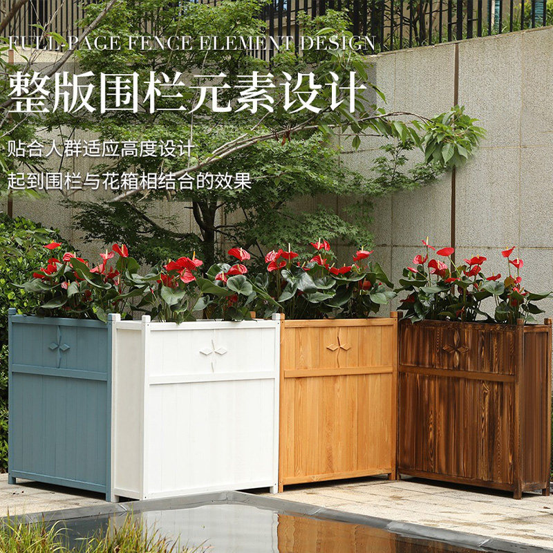 📚 防腐木花箱围栏院子长方形花架户外栅栏木制隔断室外组合外摆花槽