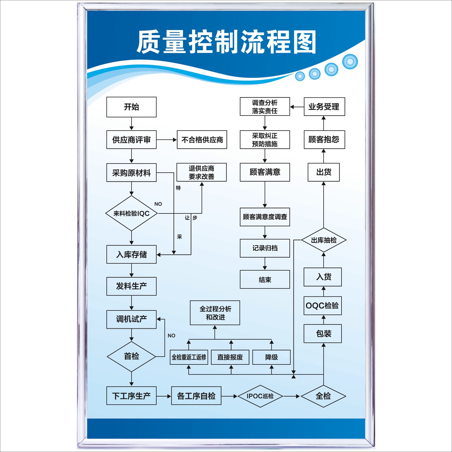 📚 质量控制流程图品质检验工厂生产车间管理制度看板提标示志识语牌