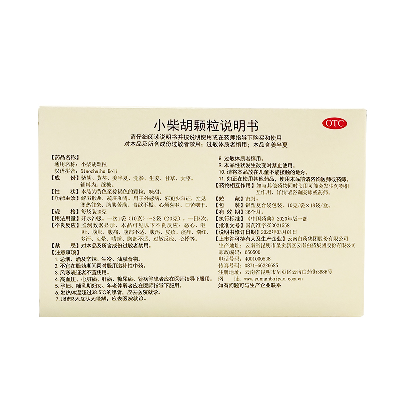 📚 云南白药小柴胡颗粒18袋发热口苦咳嗽感冒食欲不振无糖小儿清热