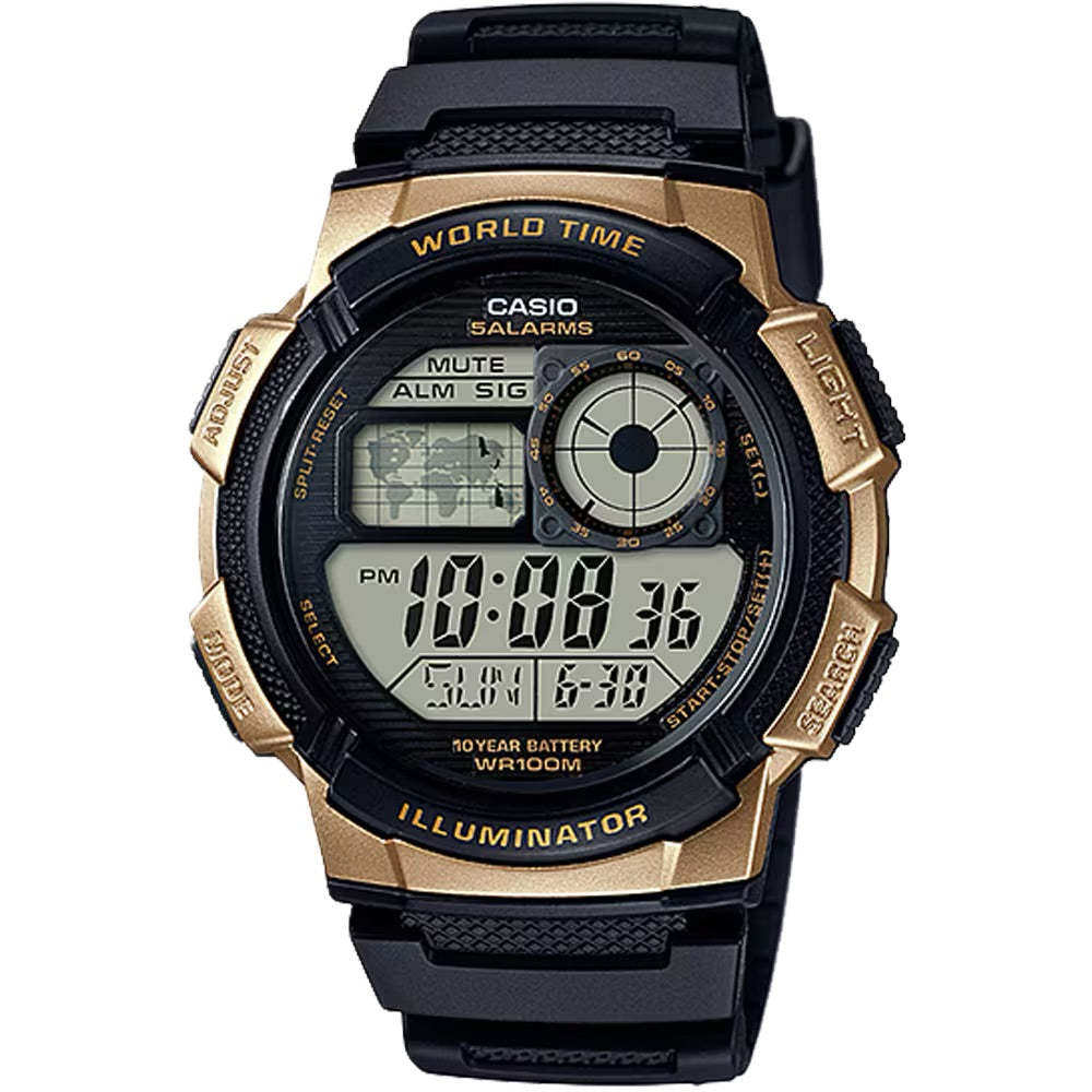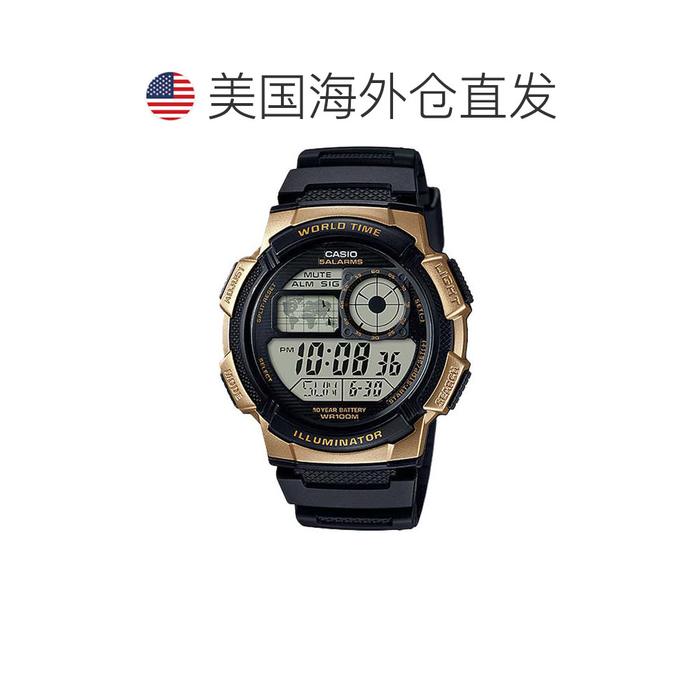 📚 自营Casio Men’s Digital Watch with Black and Gold Dial - AE