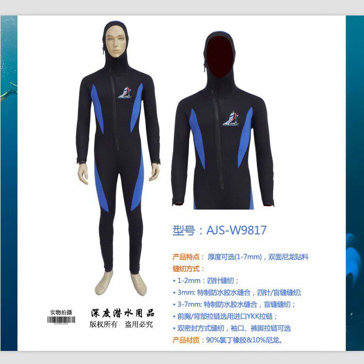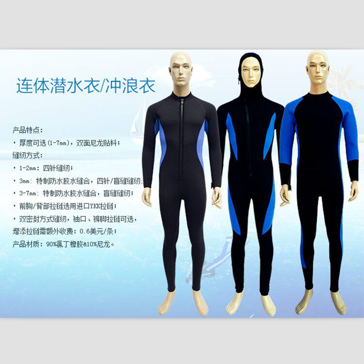 📚 5mm连体湿式潜水衣拉链潜水服冲浪衣帆板服摩托艇运动服溯溪服装