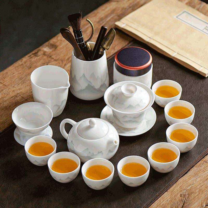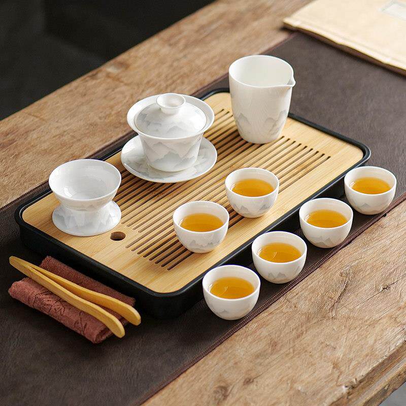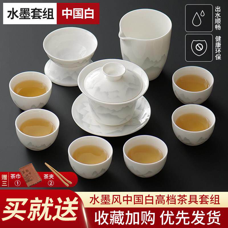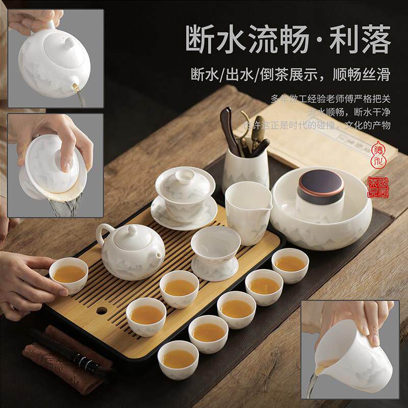 📚 德化羊脂玉茶具套组 简约家用高档功夫泡茶 盖碗茶盘轻奢白瓷茶杯