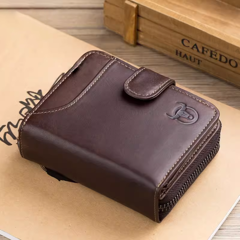 📚 牛船长皮具头层牛皮男女士风琴卡包多卡位钱夹真皮驾驶证拉链钱包