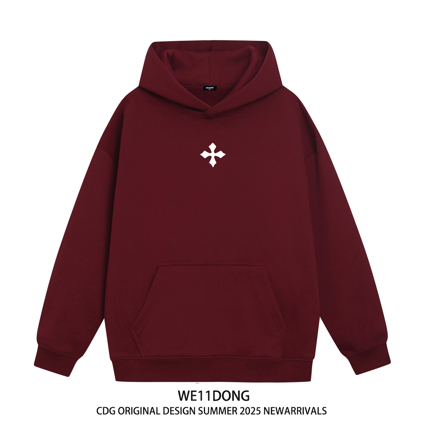 📚 WE11DONE CDG王嘉尔同款十字架印花连帽卫衣男女宽松加绒帽衫外套