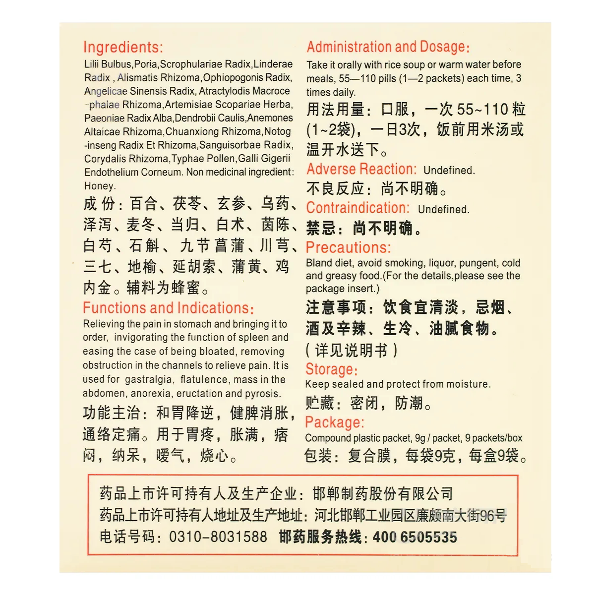 📚 华山牌 摩罗丹9g*9袋 胃疼胀满 嗳气烧心