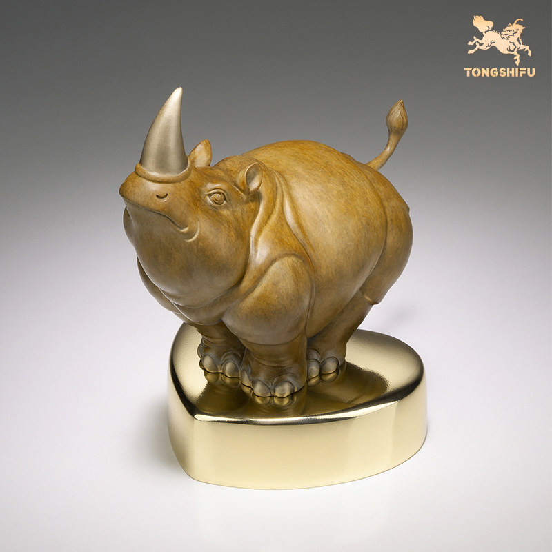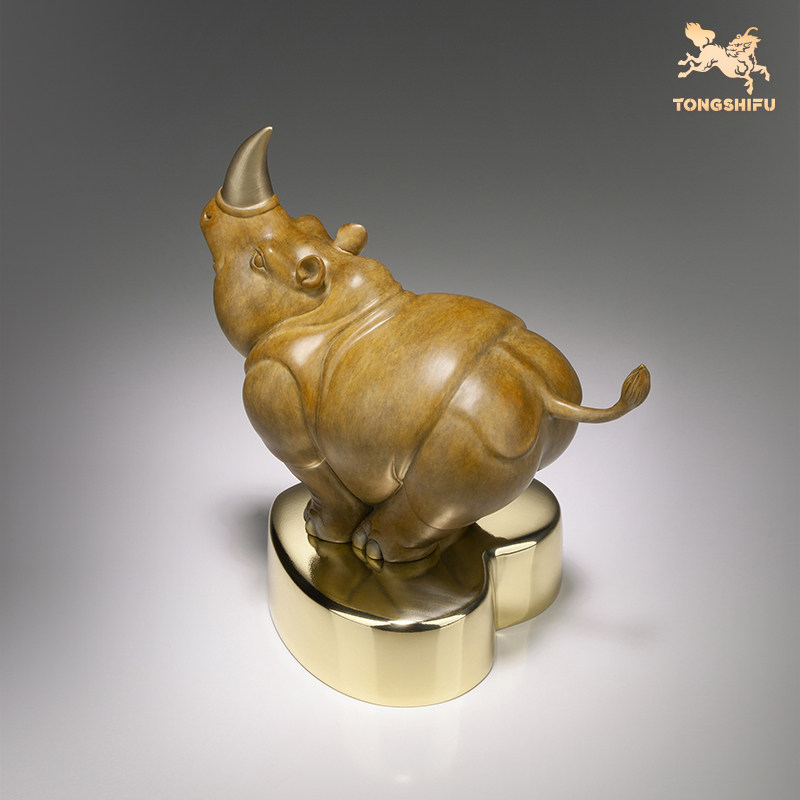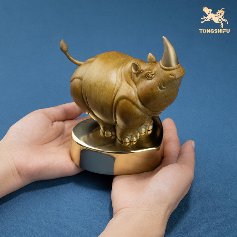 📚 铜师傅《心有灵犀》客厅桌面铜犀牛摆件 家居装饰工艺品