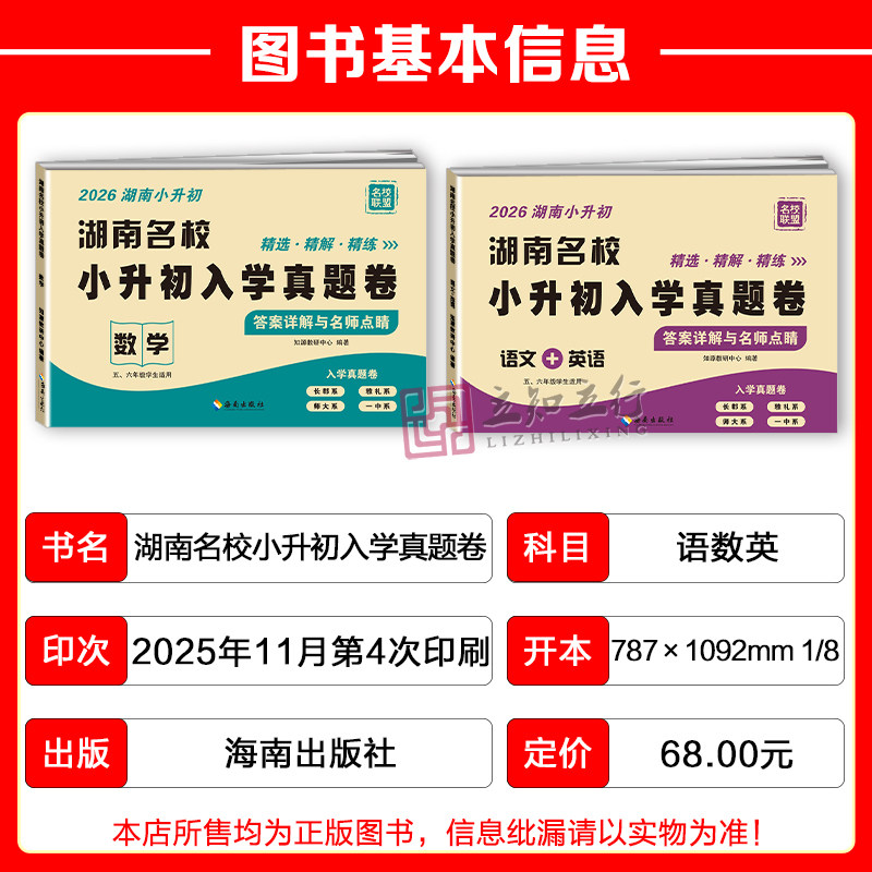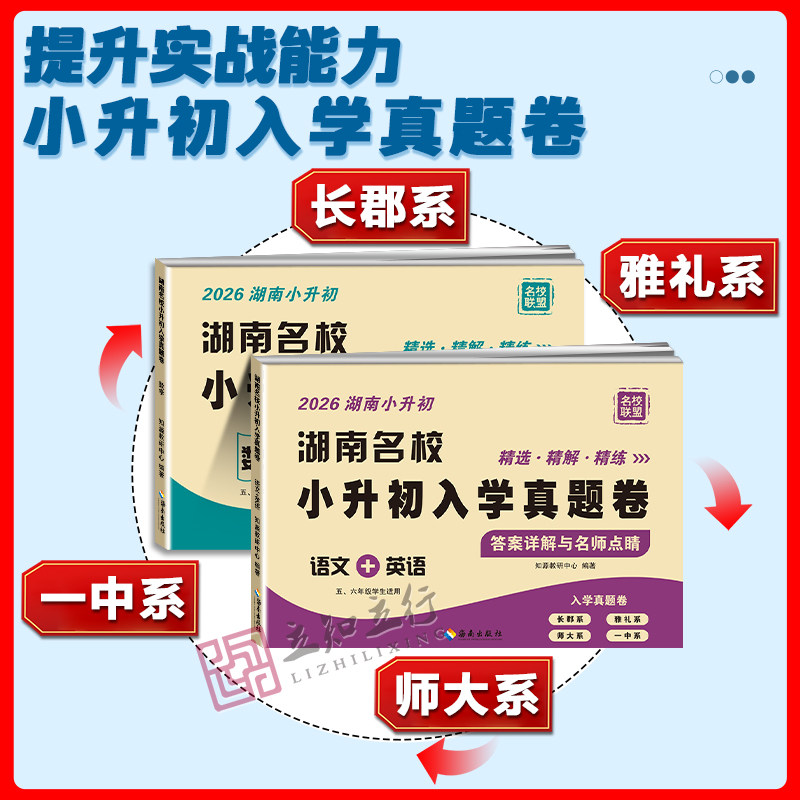 📚 2026湖南名校小升初入学真题卷语文英语数学四大名校长沙小学毕业升学试卷名师点评冲刺名校五六年级毕业分班历年招生真题卷