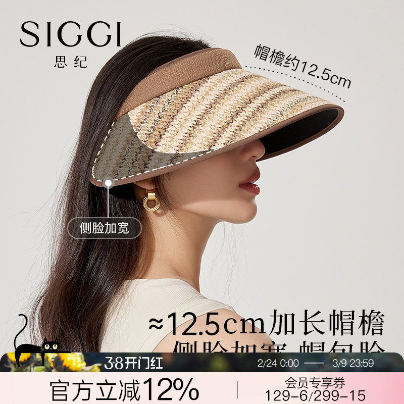 📚 siggi 防晒帽女夏空顶帽大檐防紫外线度假太阳帽简约发箍式遮阳帽