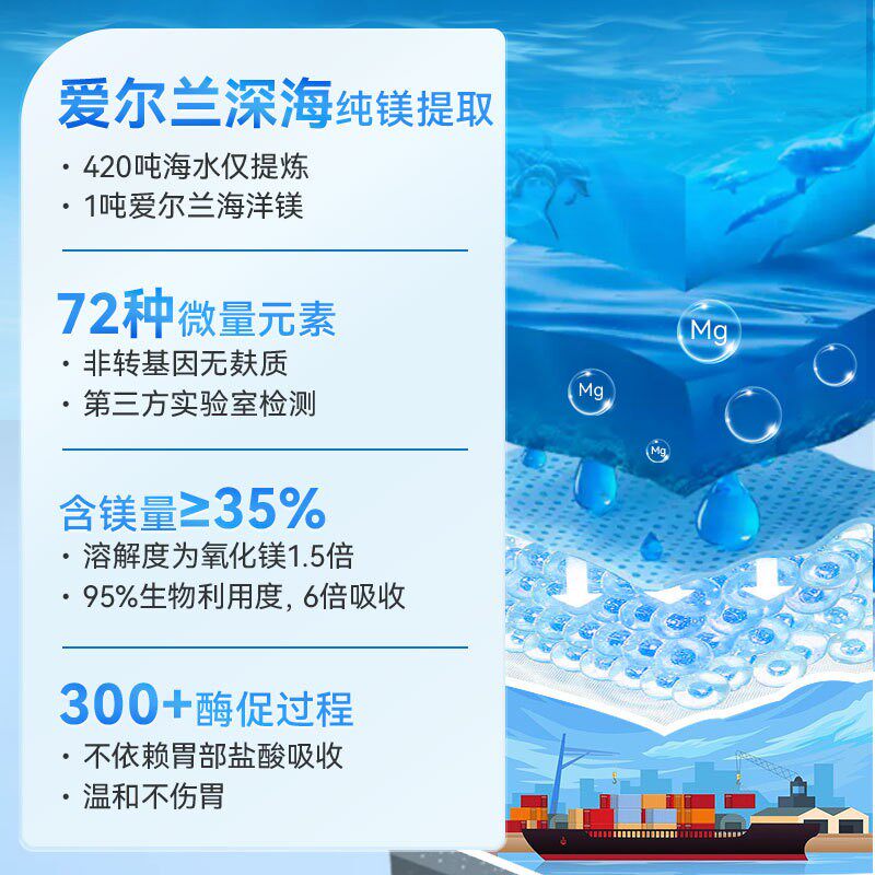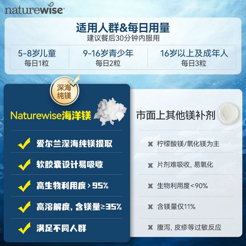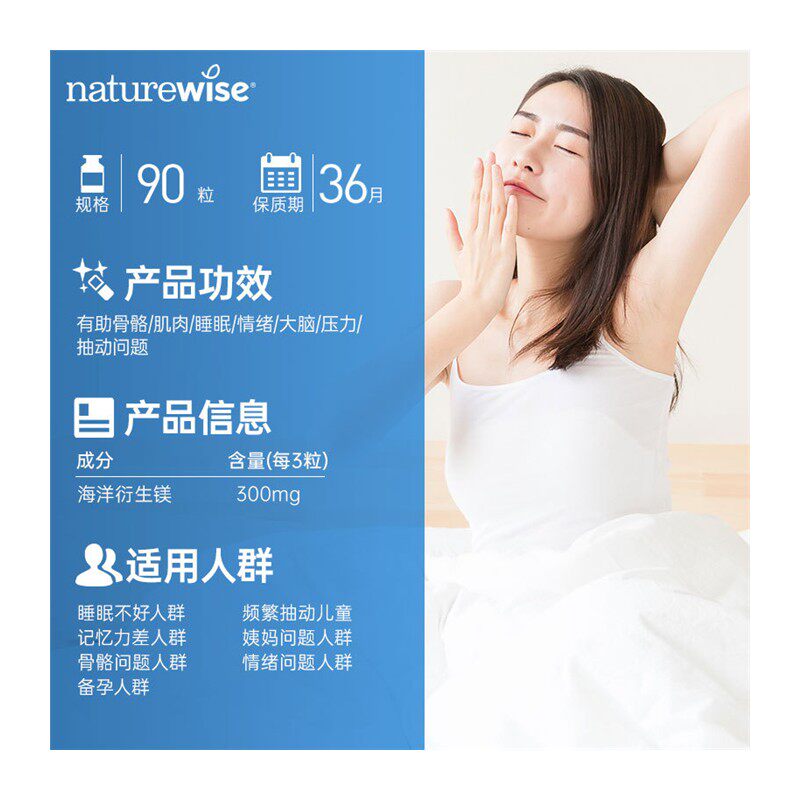 📚 Naturewise海洋镁元素补镁片镁补充剂非甘氨苏糖酸锌钾钙镁锌