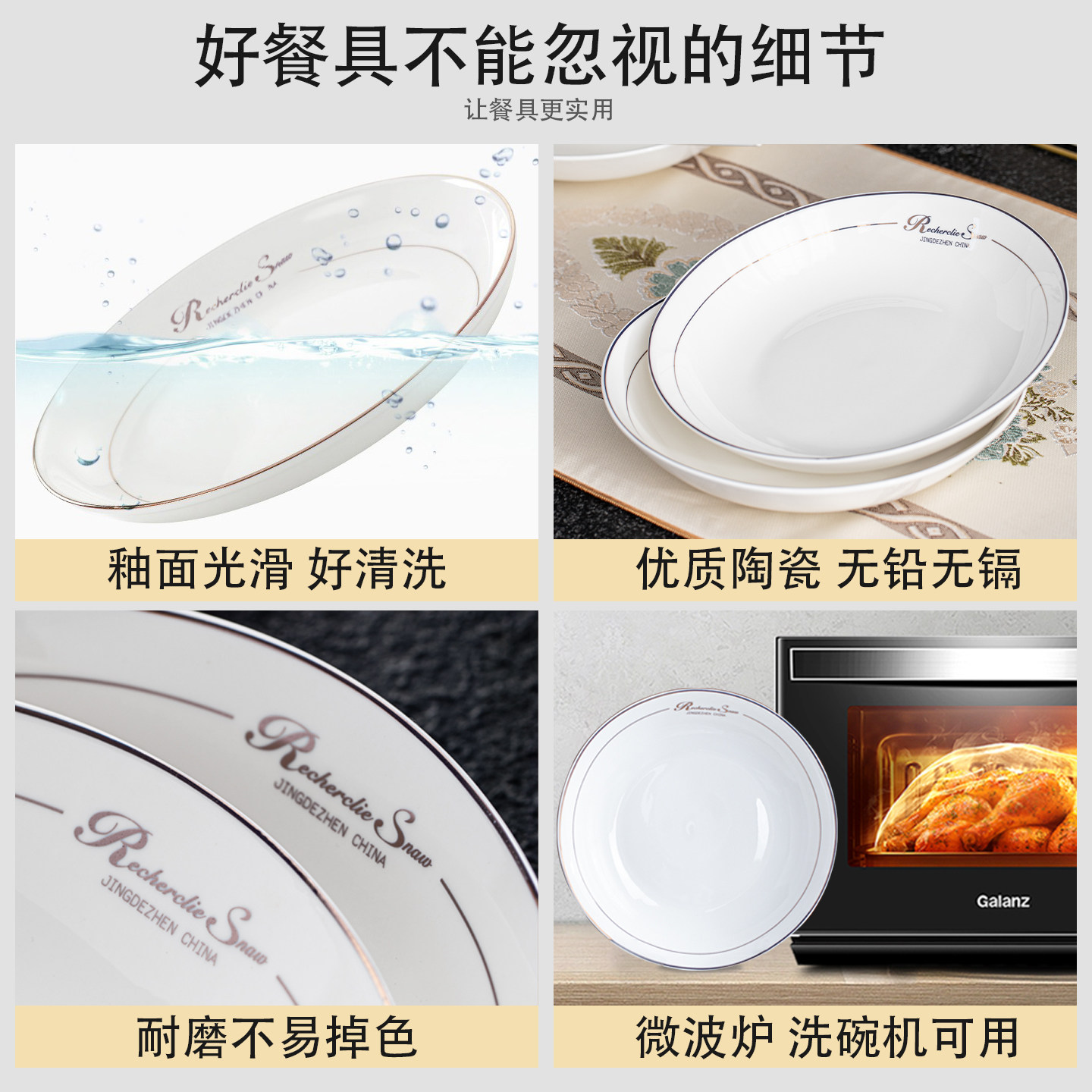 📚 4/6个装景德镇陶瓷家用盘子2026新款菜盘饭盘8英寸深盘浅盘中式