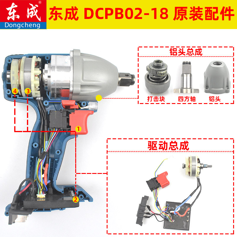 📚 东成DCA无刷电动扳手配件DCPB02-18外壳四方轴铝头开关驱动充电器