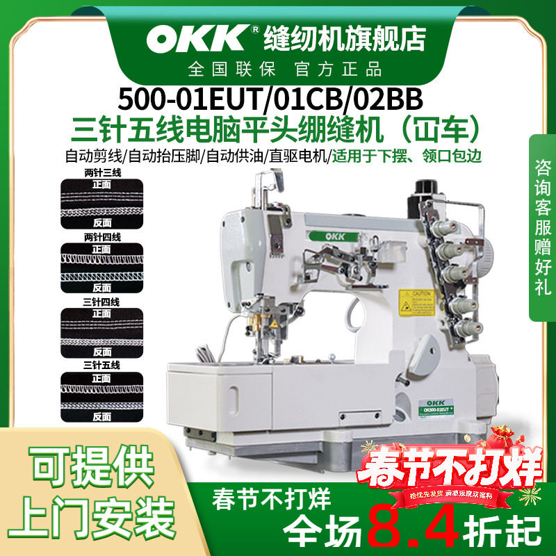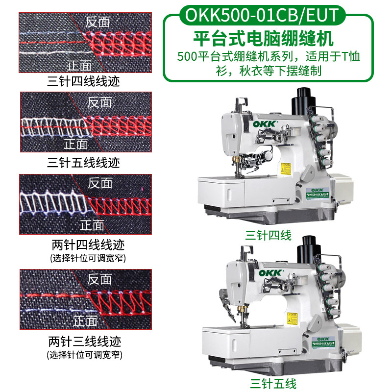 📚 OKK500三针五线工业直驱绷缝机法兰绒毛毯领子包边缝纫平拉砍坎车