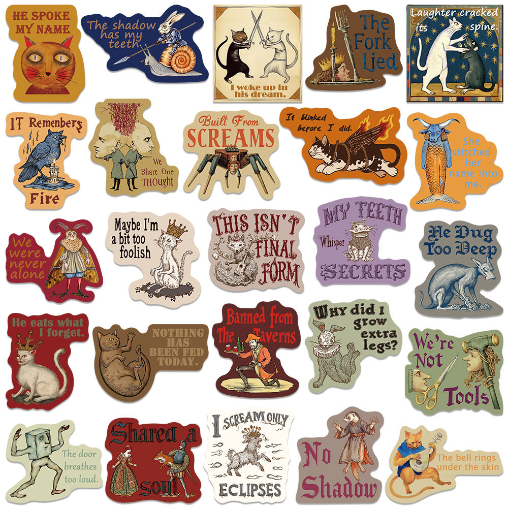 📚 50张中世纪诡异抽象贴纸复古英文怪诞美学涂鸦创意装饰防水贴画