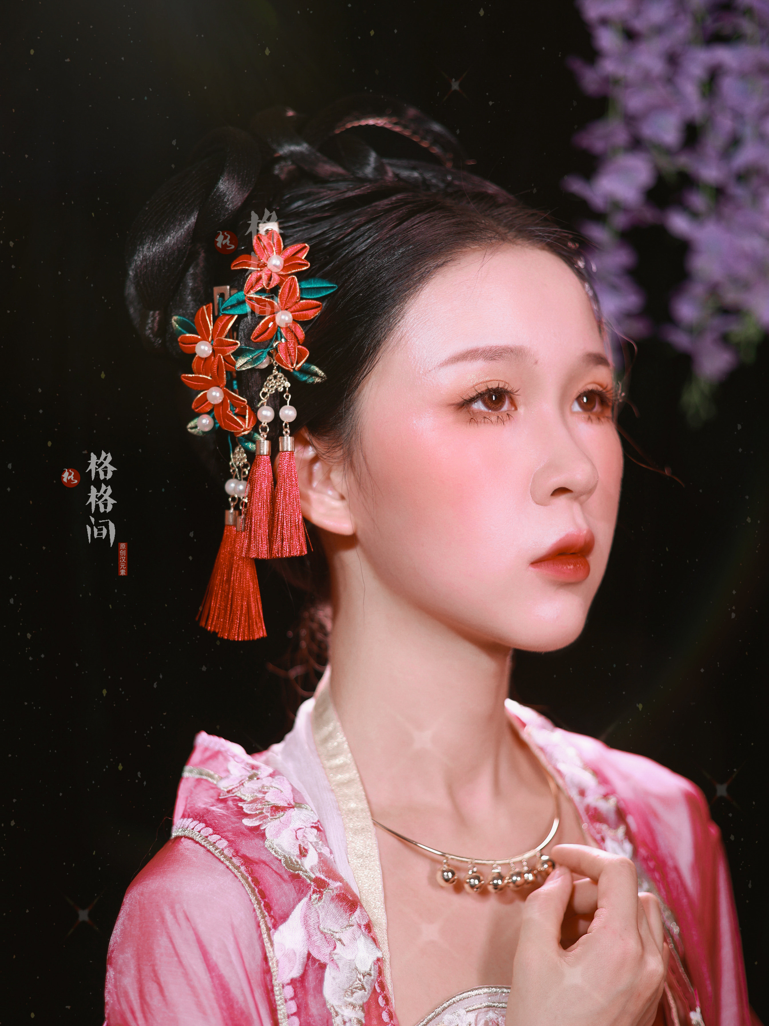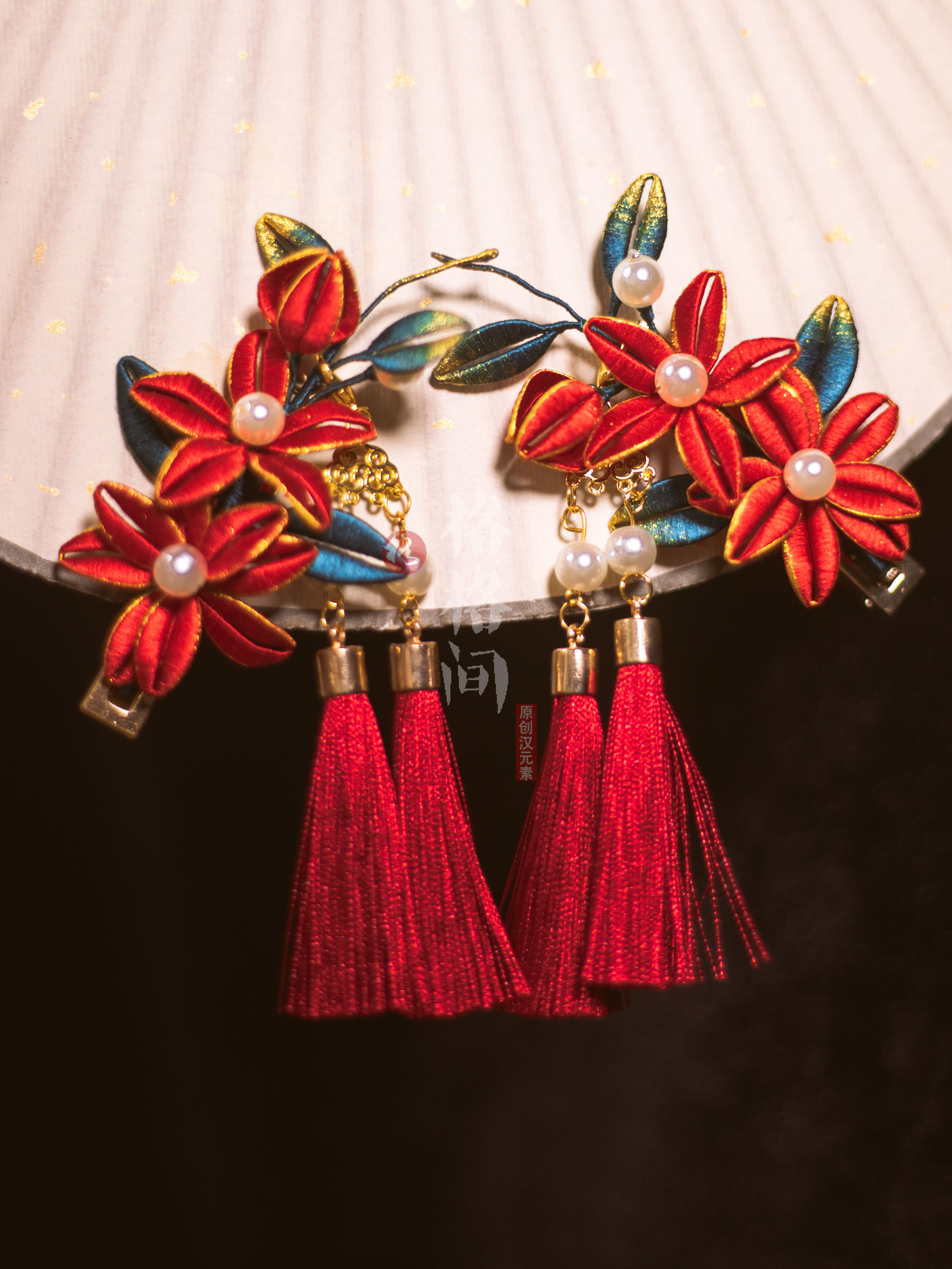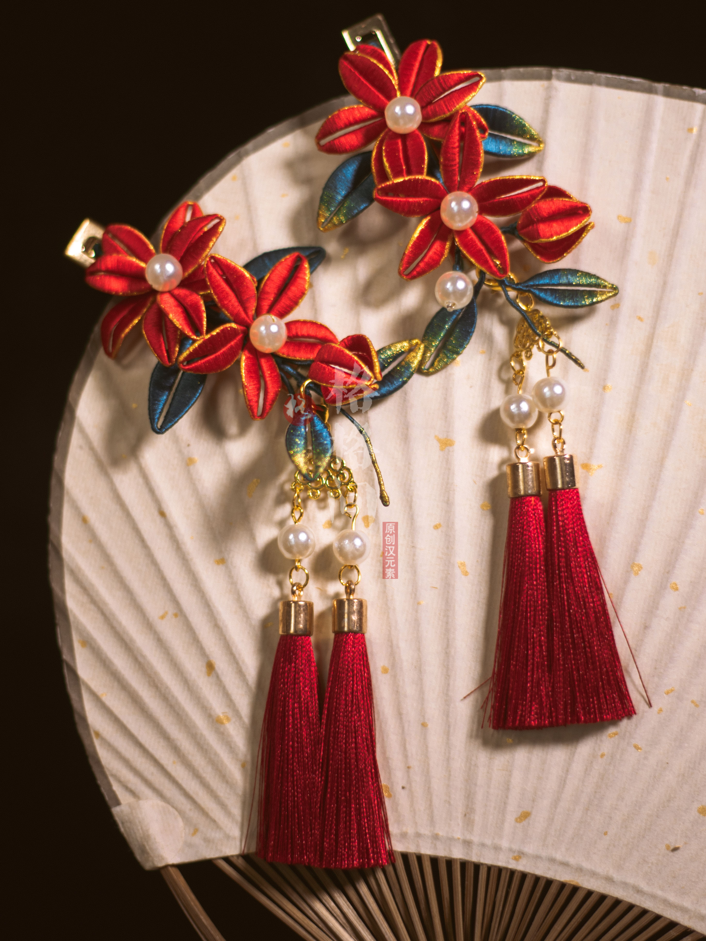 📚 格格间原创【小丹红】缠花缉珠新年发夹儿童古风珍珠花朵流苏汉服
