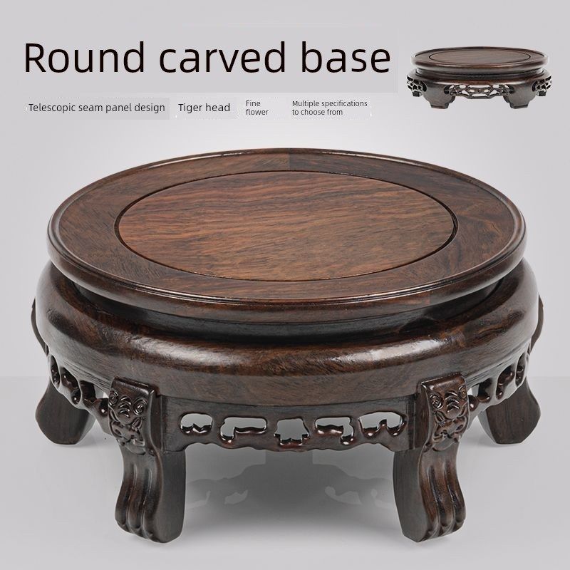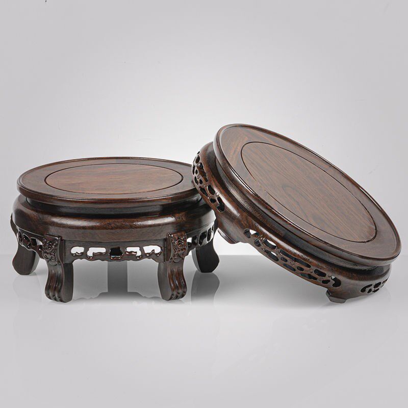 📚 黑檀木圆形底座花盆花瓶奇石盆景酒缸坛佛像加高红木实木底座托架