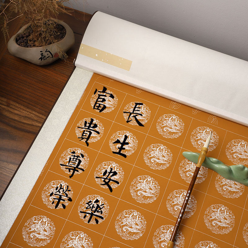 📚 【草木堂】四尺整张瓦当空白格子卷轴书法作品纸全绫装裱挂轴大尺寸28格84格120格立轴68*138CM创作书法卷轴
