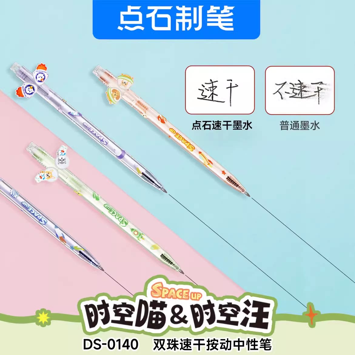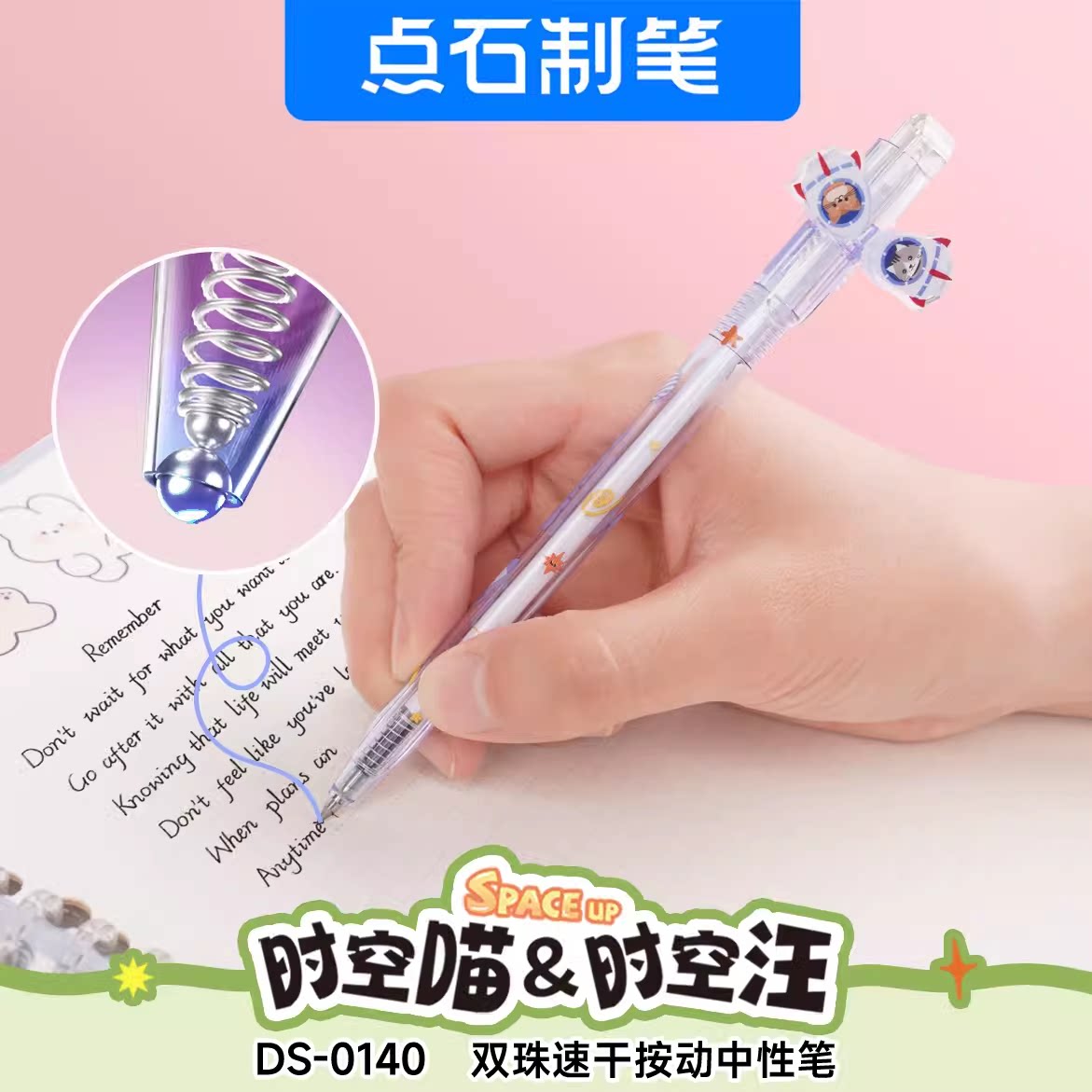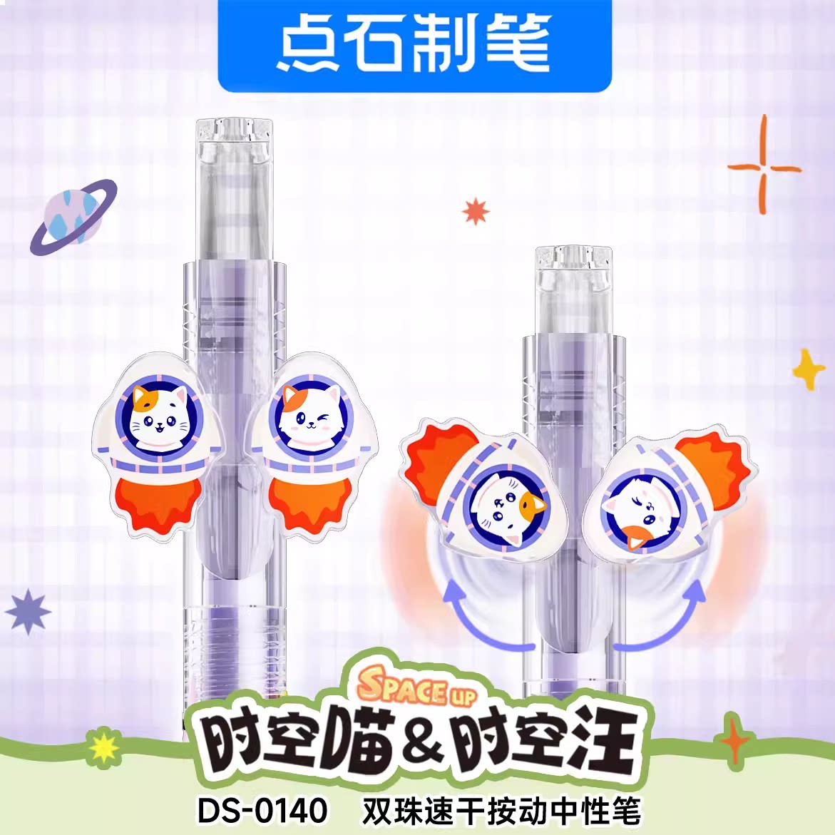 📚 点石制笔时空舱中性笔时空喵&时空汪双珠速干按动旋转中性笔0.5mm黑芯可爱卡通学生用刷题练字签字笔DS-0140