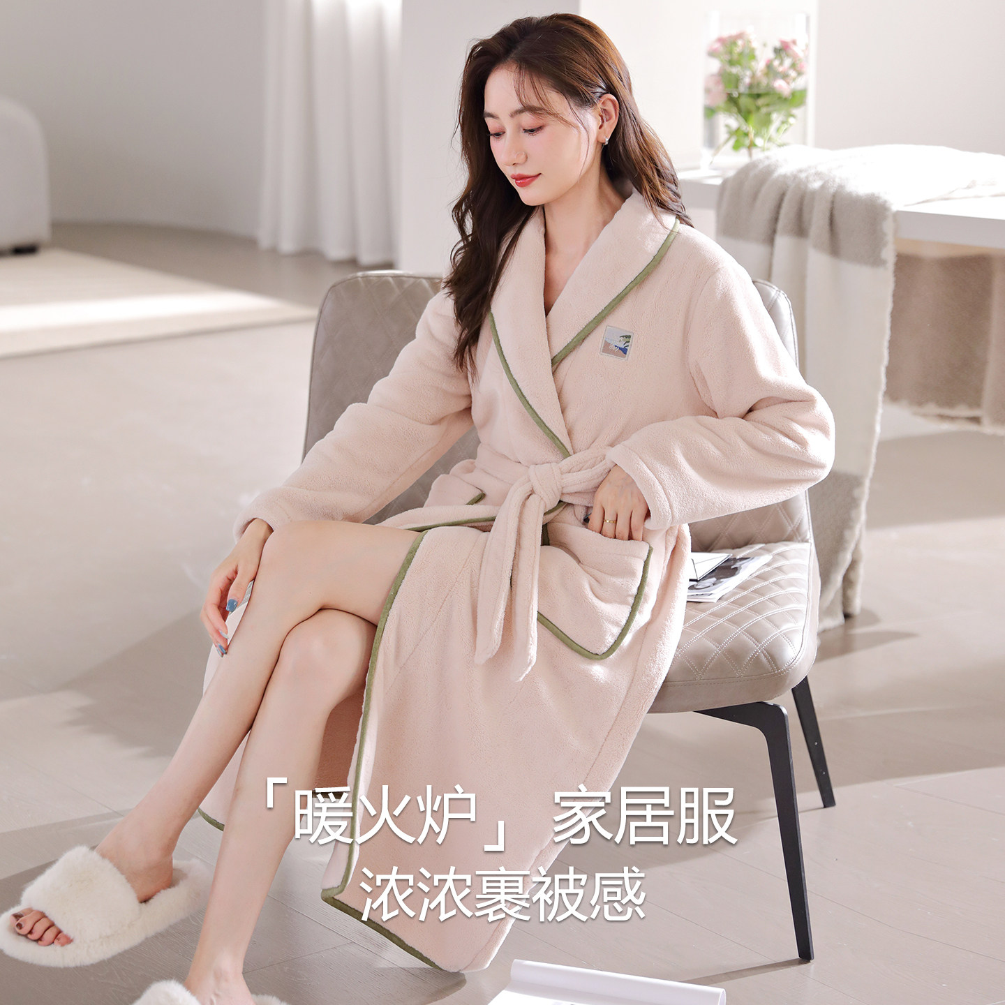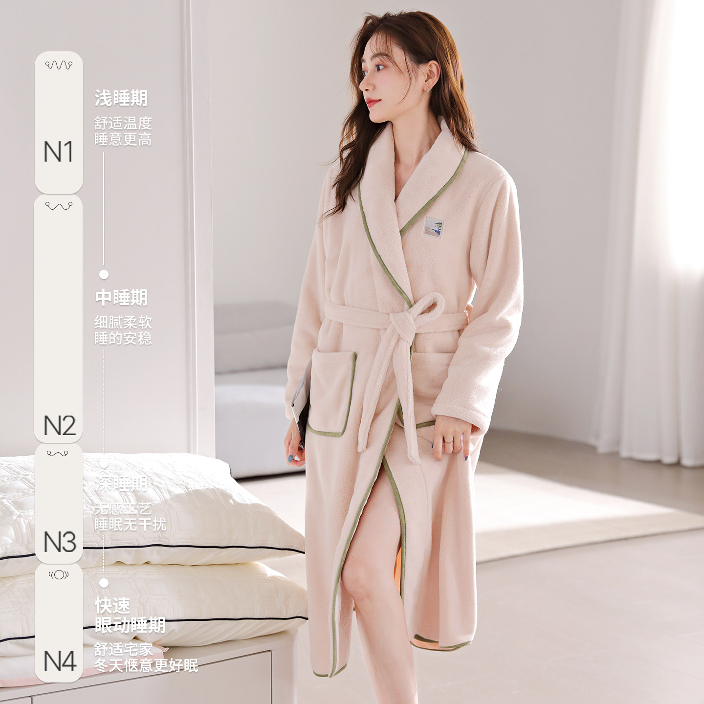 📚 芬腾可安睡袍女款2026新款冬季高级感珊瑚绒浴袍加厚简约睡衣女款