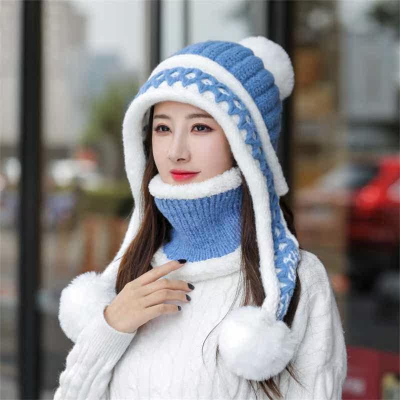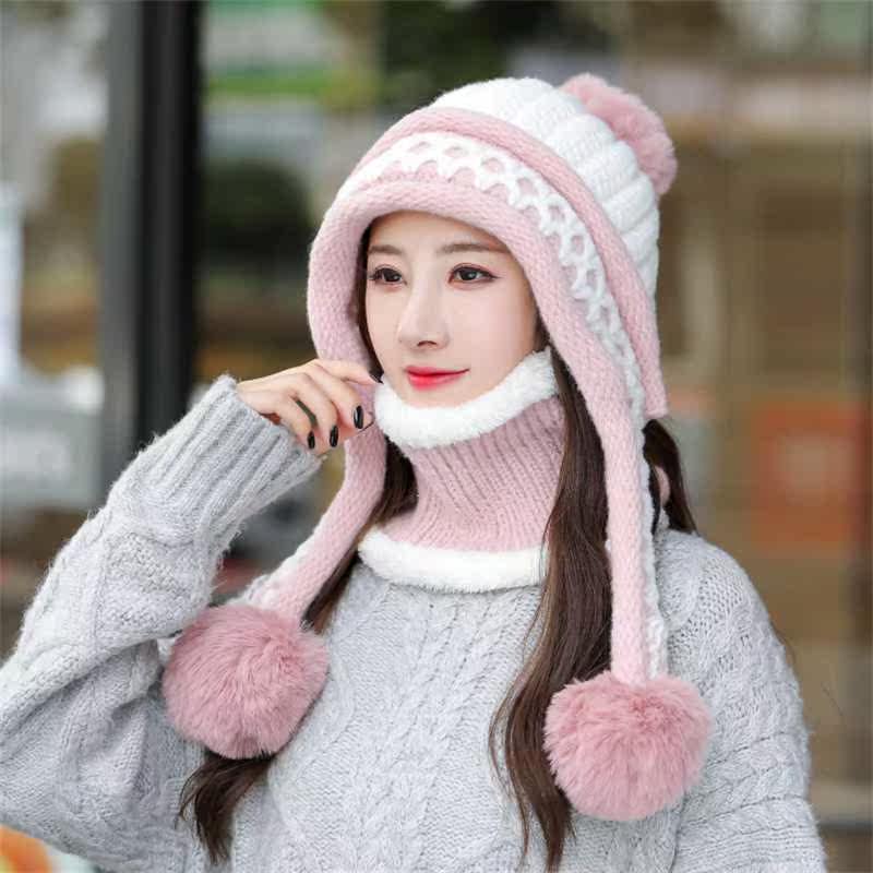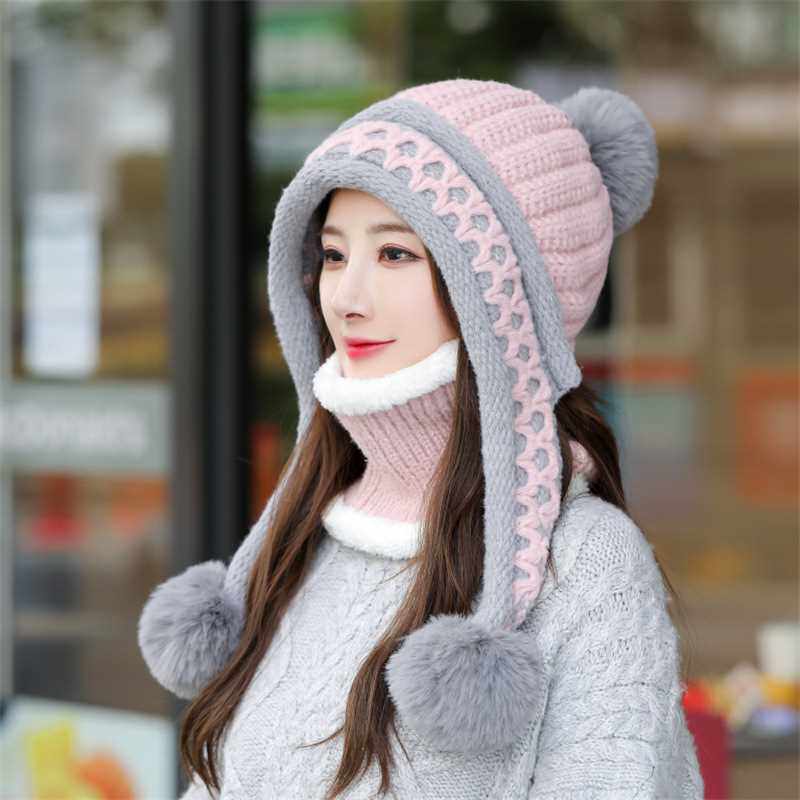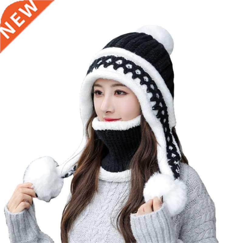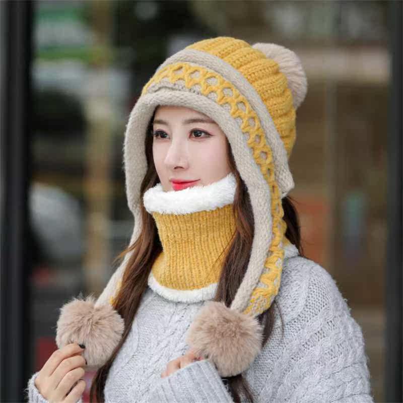 📚 2021 Woolen Hat Women Winter Ear Protection Knitted Hat Bib