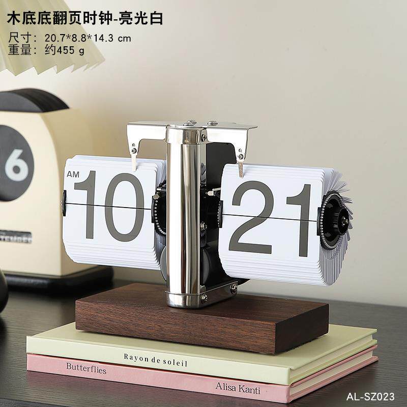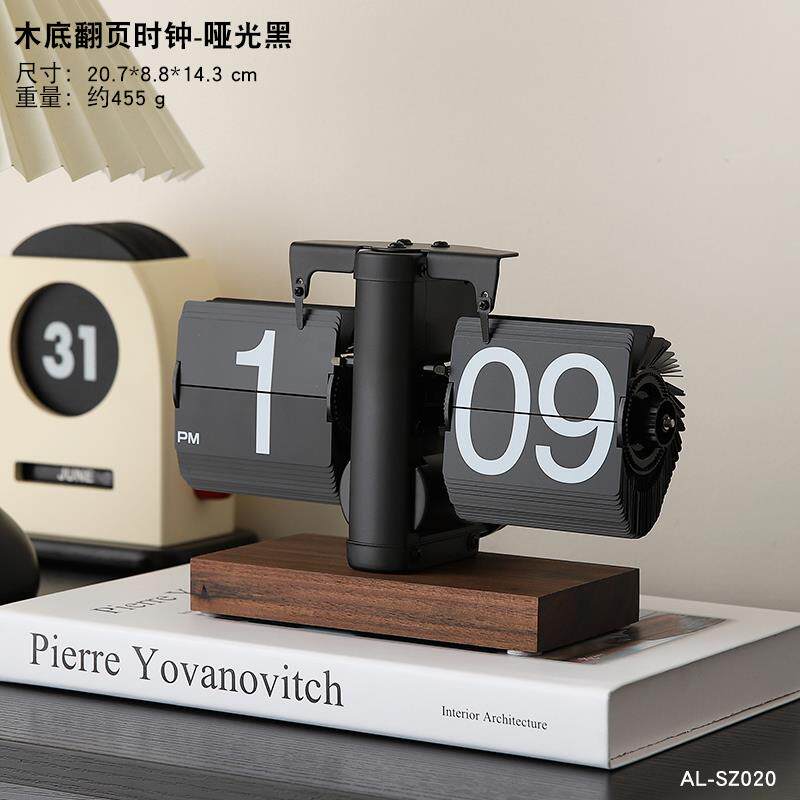 📚 高档装机轻奢自动翻页时钟面摆件复古械桌表摆台式数字钟表创意客