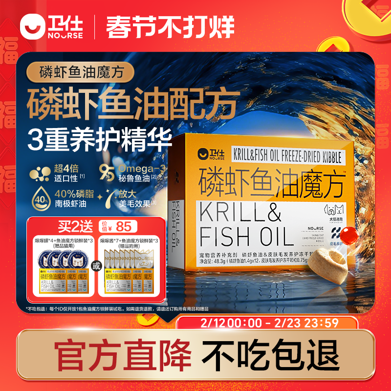 📚 卫仕磷虾鱼油魔方深海鱼油猫用爆珠美毛魔方狗狗犬宠物专用卵磷脂