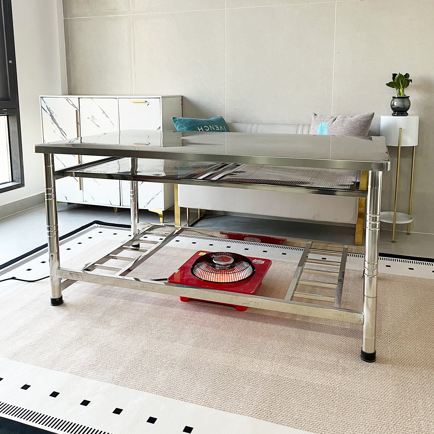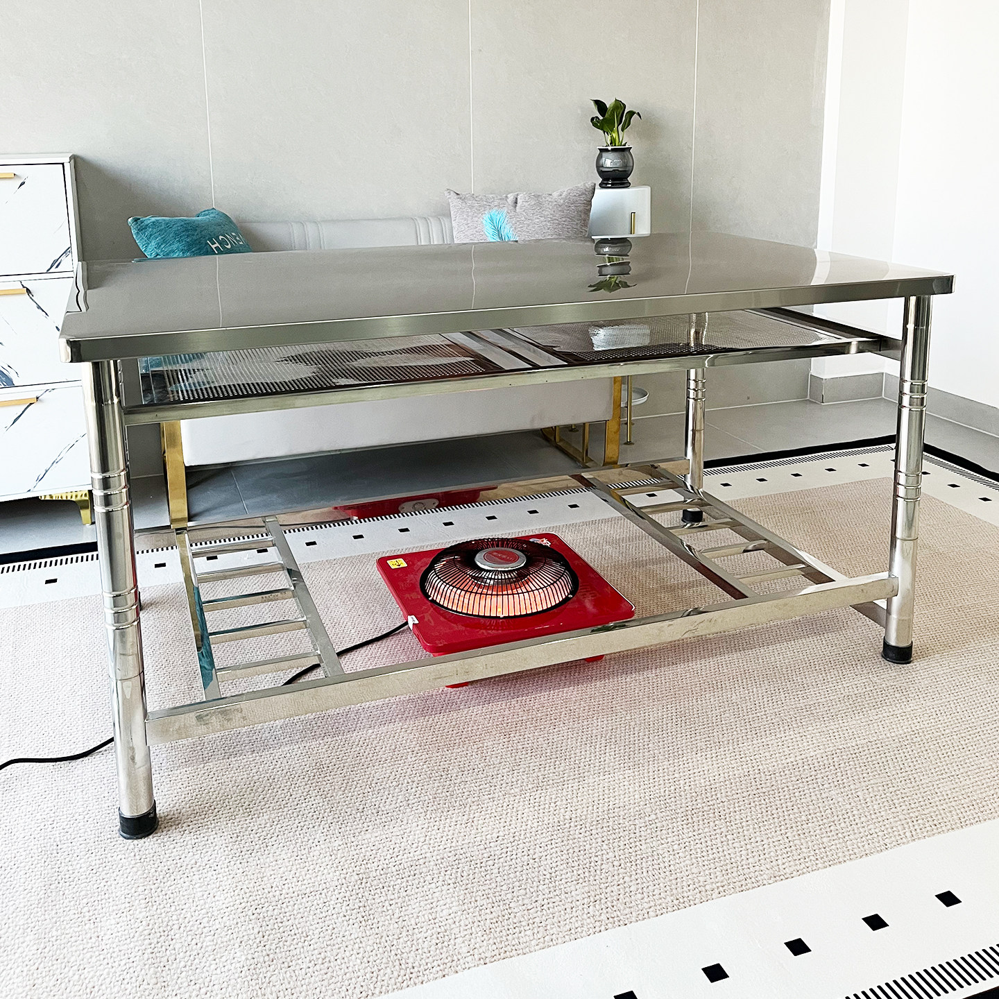 📚 新款家用烤火桌子全不锈钢桌面长方形条台茶几SUS304电炉取暖桌