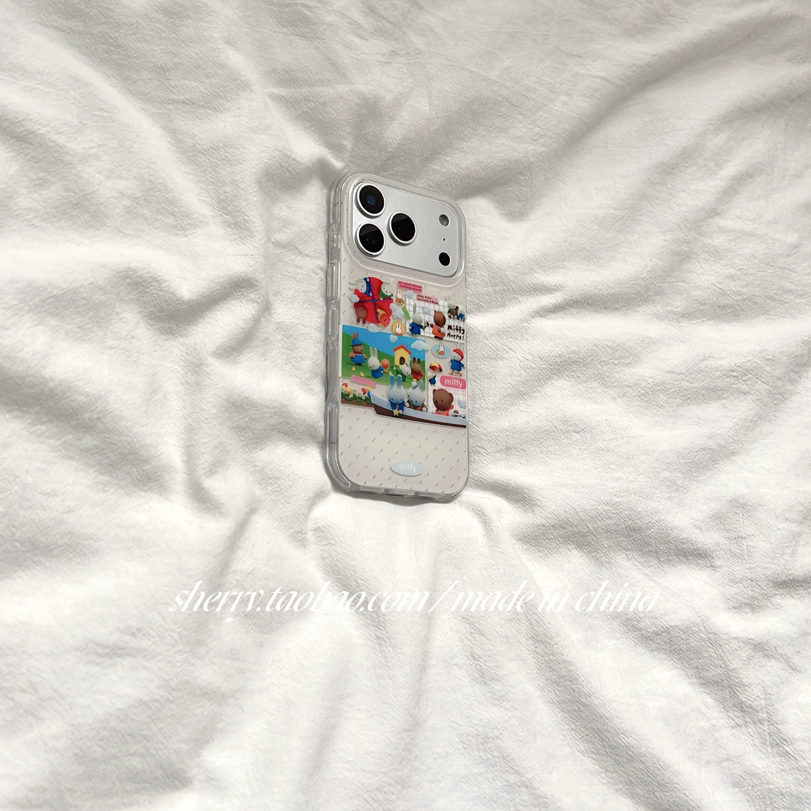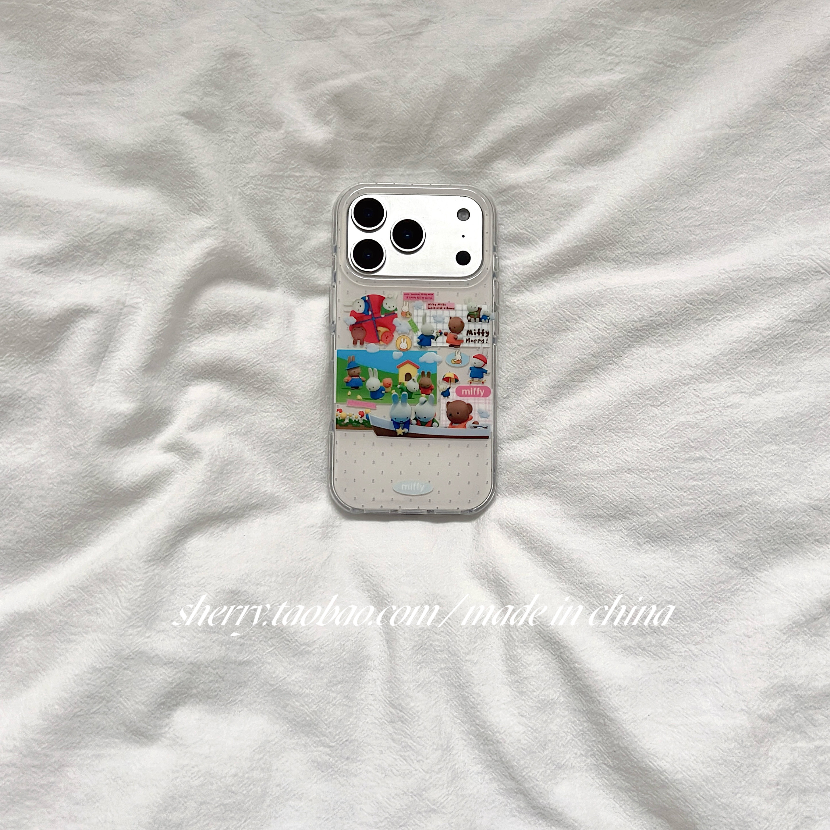 📚 SHERRY*ins风白色波点农场玩偶兔子适用于苹果17ProMax手机壳iPhone16Pro小众少女心15简约14小清新卡通可爱