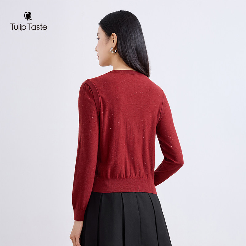 📚 郁香菲圆领针织衫女气质优雅春季时尚珠片显瘦长袖套头毛衫上衣