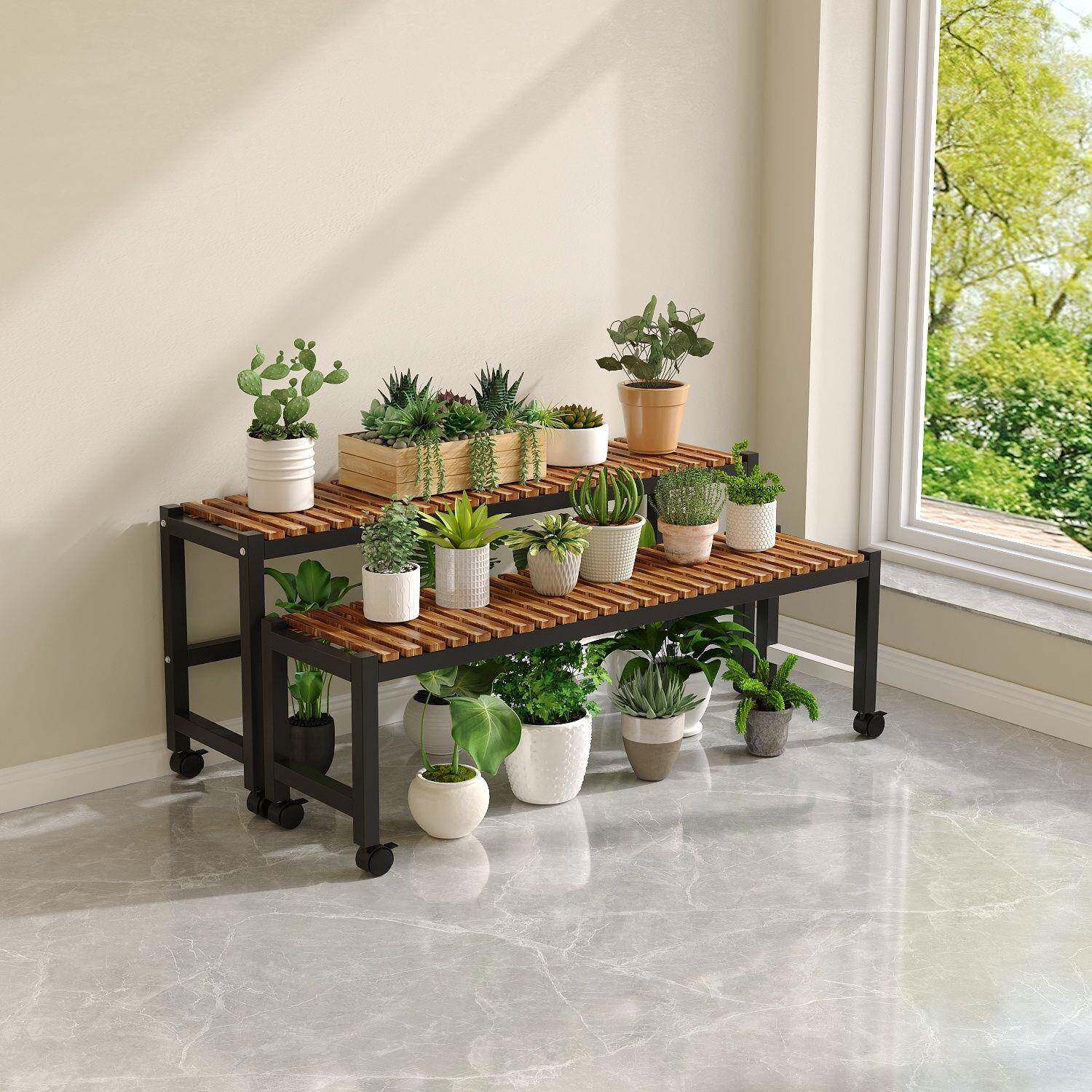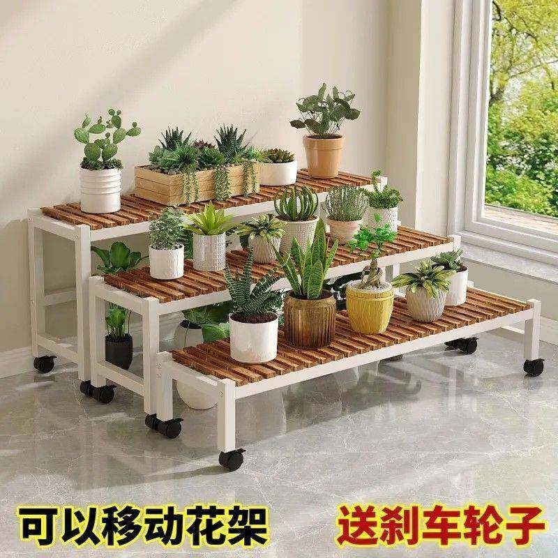 📚 花架置物架实木阶梯带多层花轮落地式铁RNS艺家用室内户外盆绿萝
