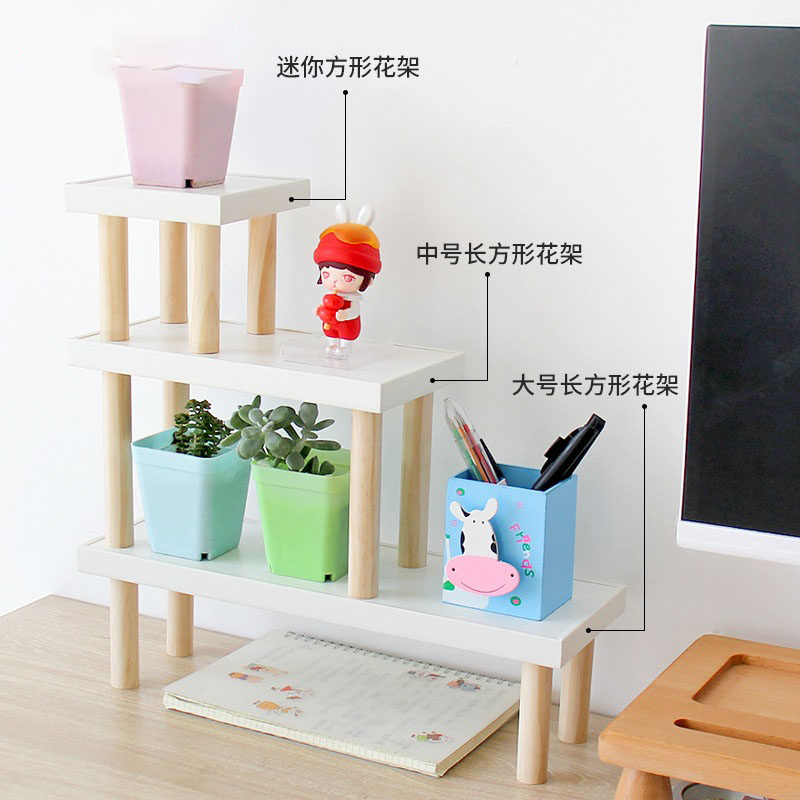 📚 桌面小花架办公桌置物盆架实木小型置物架窗台多肉架子收纳木架子
