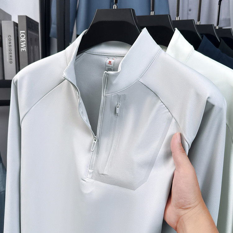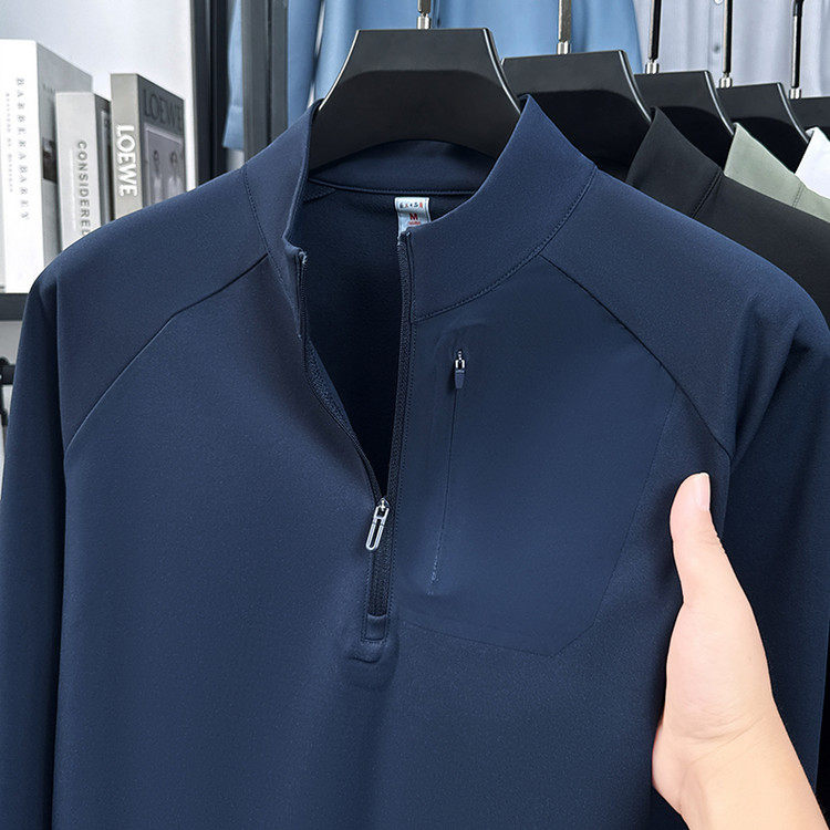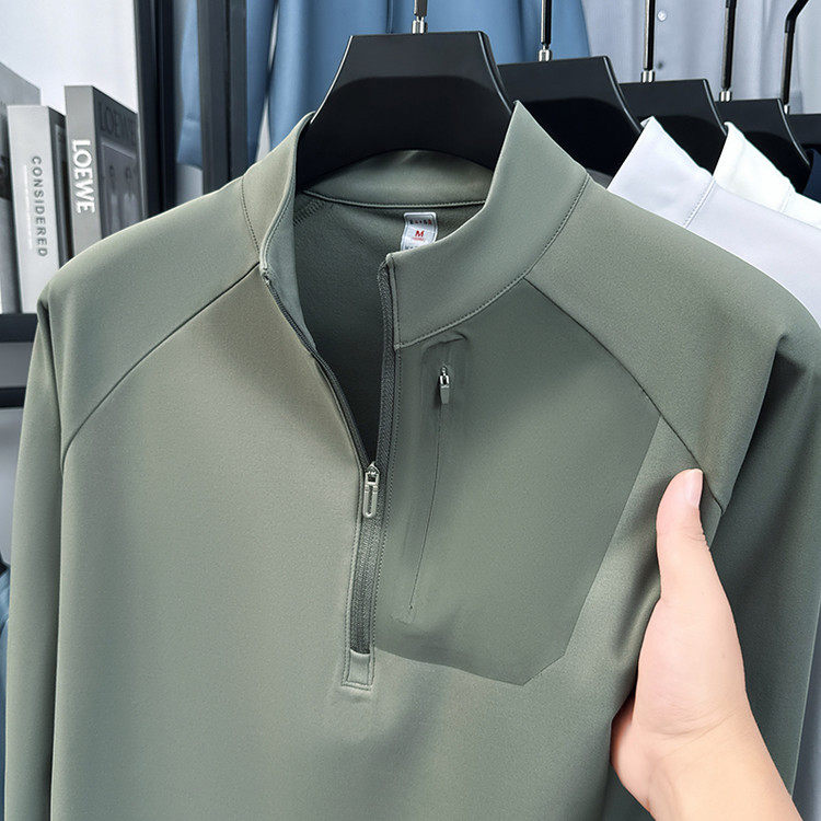 📚 某桑特平替秋季轻户外跑步长袖t恤男士立领速干加绒加厚磨毛卫衣